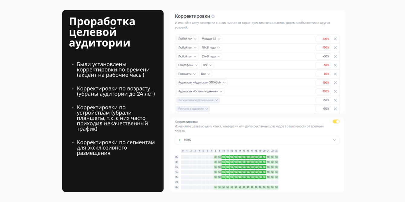 Это позволило точнее таргетировать заинтересованную аудиторию и сократить расходы на нерелевантные клики.