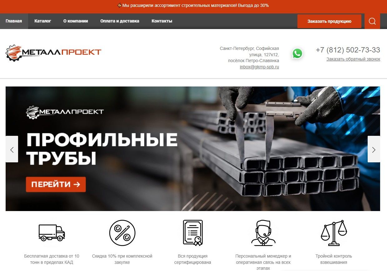 «ГК МеталлПроект» торгует стройматериалами. На старте продавал только в Санкт-Петербурге и Ленинградской области, затем расширился по регионам. В ассортименте арматура, металлопрокат, газобетонные блоки, кирпич.