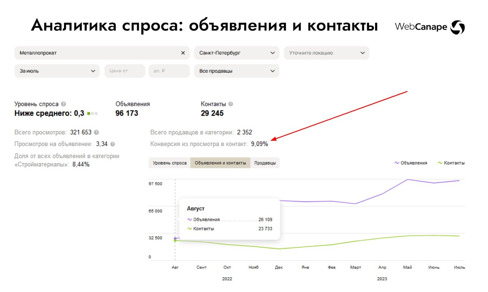 Конверсия в заявку в среднем 40%. Объемы продаж мы сообщить не можем, клиент продает стройматериалы, средний чек довольно высокий.