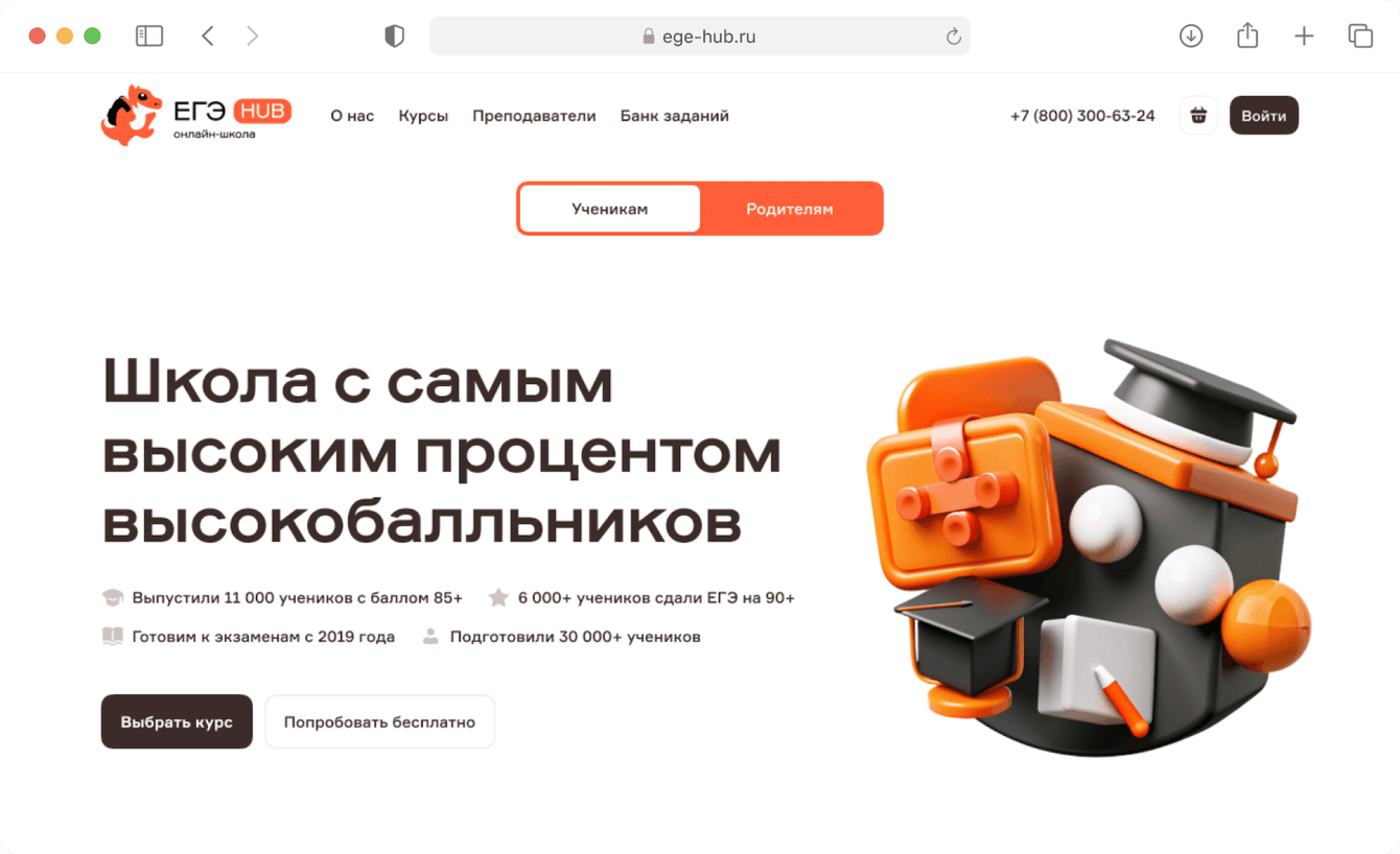 ЕГЭ hub — одна из крупнейших онлайн-школ для подготовки к ЕГЭ и ОГЭ. Школа подготовила более 30 000 учеников и входит в ТОП-20 компаний на рынке онлайн-образования.