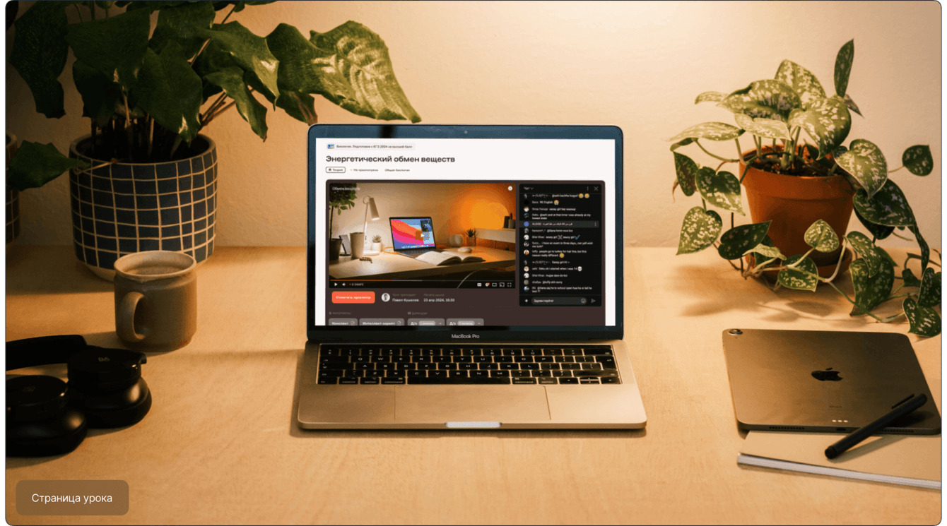 Страница урока содержит запись или трансляцию, а также дополнительные материалы для скачивания.