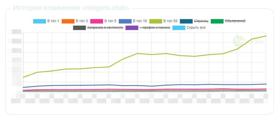 Увеличение числа ключевых запросов в ТОП-50 на 60%.