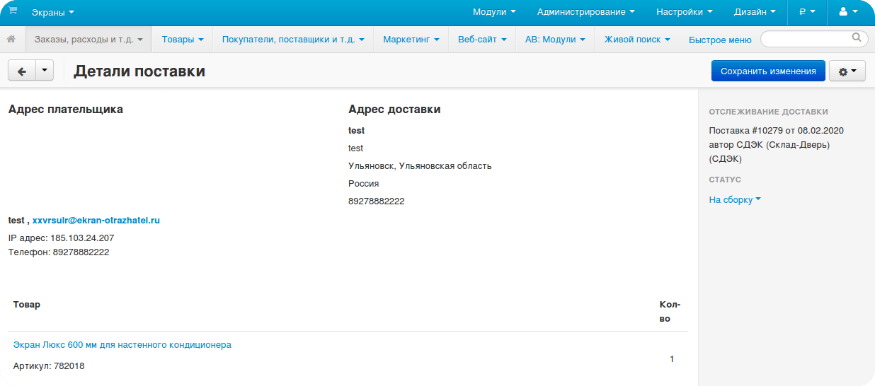 Это не подходило для нашего клиента, так как экраны для кондиционеров — товар габаритный, но при этом легкий. Просто перемножив габариты груза, калькулятор СДЭК получал объемный вес, который намного превышал фактический. Соответственно стоимость доставки возрастала в 1,5–2 раза. Иногда объемный вес груза получался таким большим, что СДЭК становился недоступным в качестве способа доставки. Нужно было придумать, как обойти эту проблему. Плюс к этому было решено сделать еще несколько небольших доработок для удобства администраторов и покупателей.