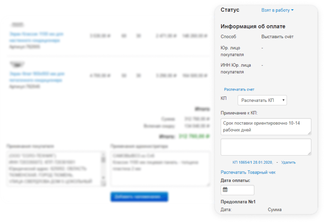 У клиента есть необходимость отправлять коммерческие предложения, когда покупатель — юридическое лицо. Чтобы упростить этот процесс и разгрузить администратора магазина, мы добавили кнопку автоматического формирования коммерческого предложения. Теперь это можно сделать одним кликом из панели администрирования.