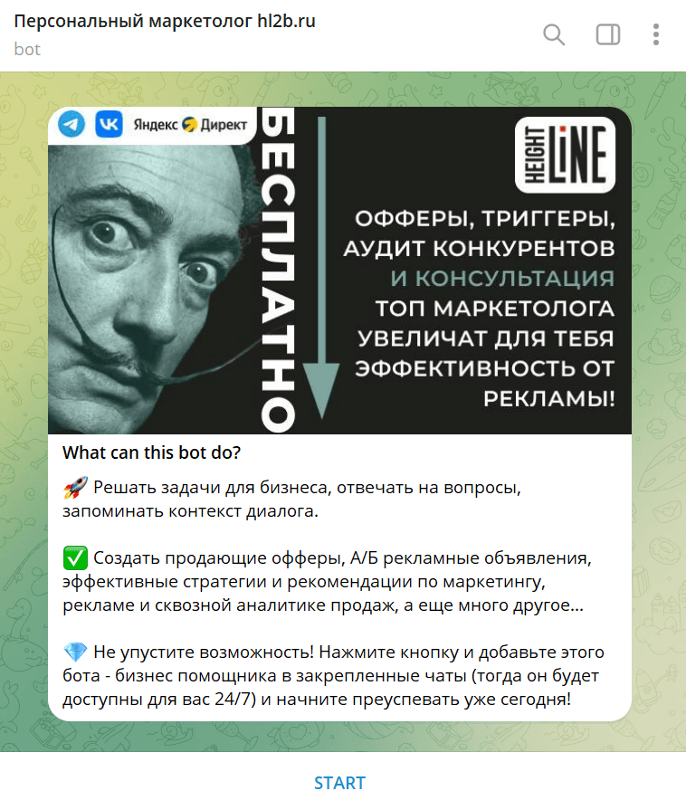 Чат-бот в Телеграм @how2sellbot отлично генерирует лиды — конверсия достигает 30%, а вот качество лидов существенно зависит от оффера и самой воронки.