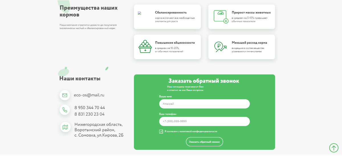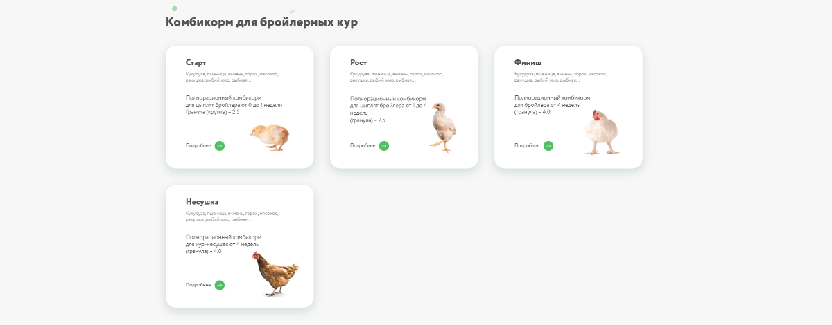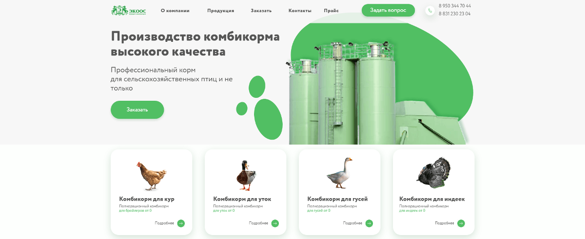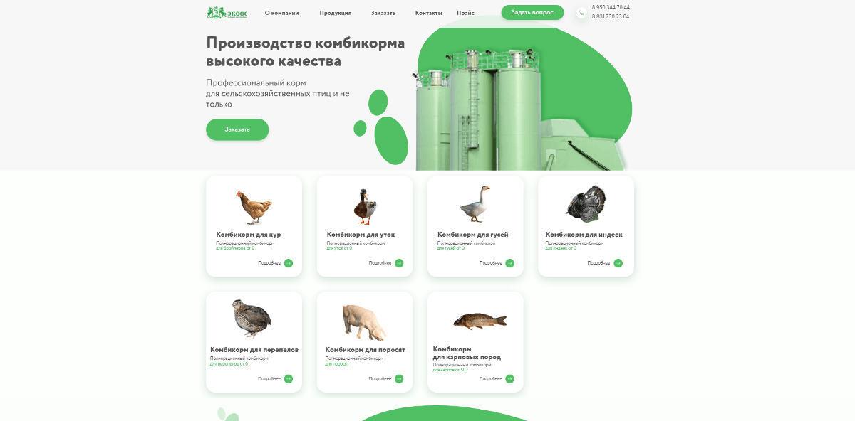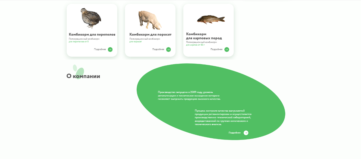 После разработки структуры сайта для компании по производству комбикорма, наш дизайнер отрисовал дизайн-макет. Макет был согласован с заказчиком, учтены все запросы пожелания, затем внесены необходимые правки.