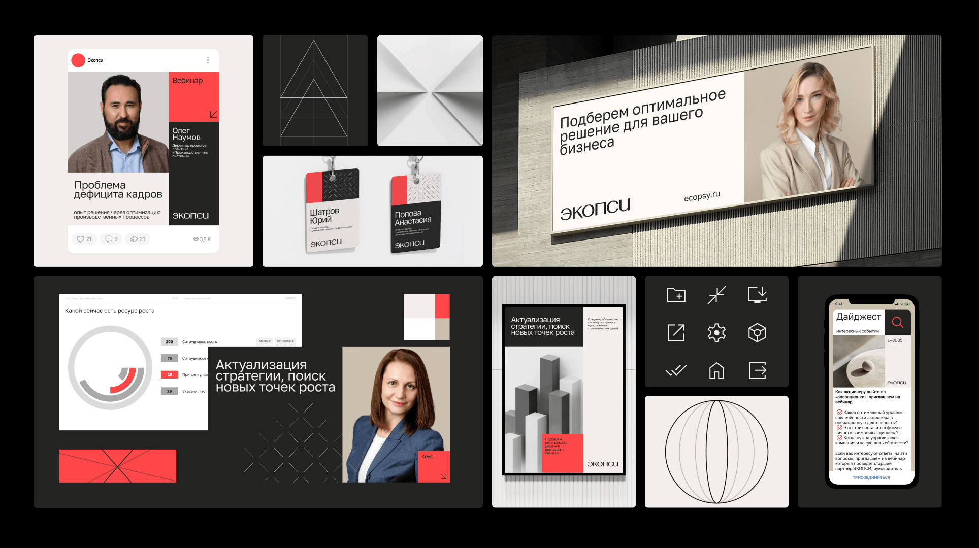Обновлённый стиль ЭКОПСИ получился современным, структурным и, в то же время, человечным. Он подчёркивает экспертизу компании и её подход к бизнесу через экономику и психологию. Это не просто внешний облик, а инструмент, который поможет ЭКОПСИ продолжать уверенно заявлять о себе в мире управленческого консалтинга, оставаясь при этом собой.