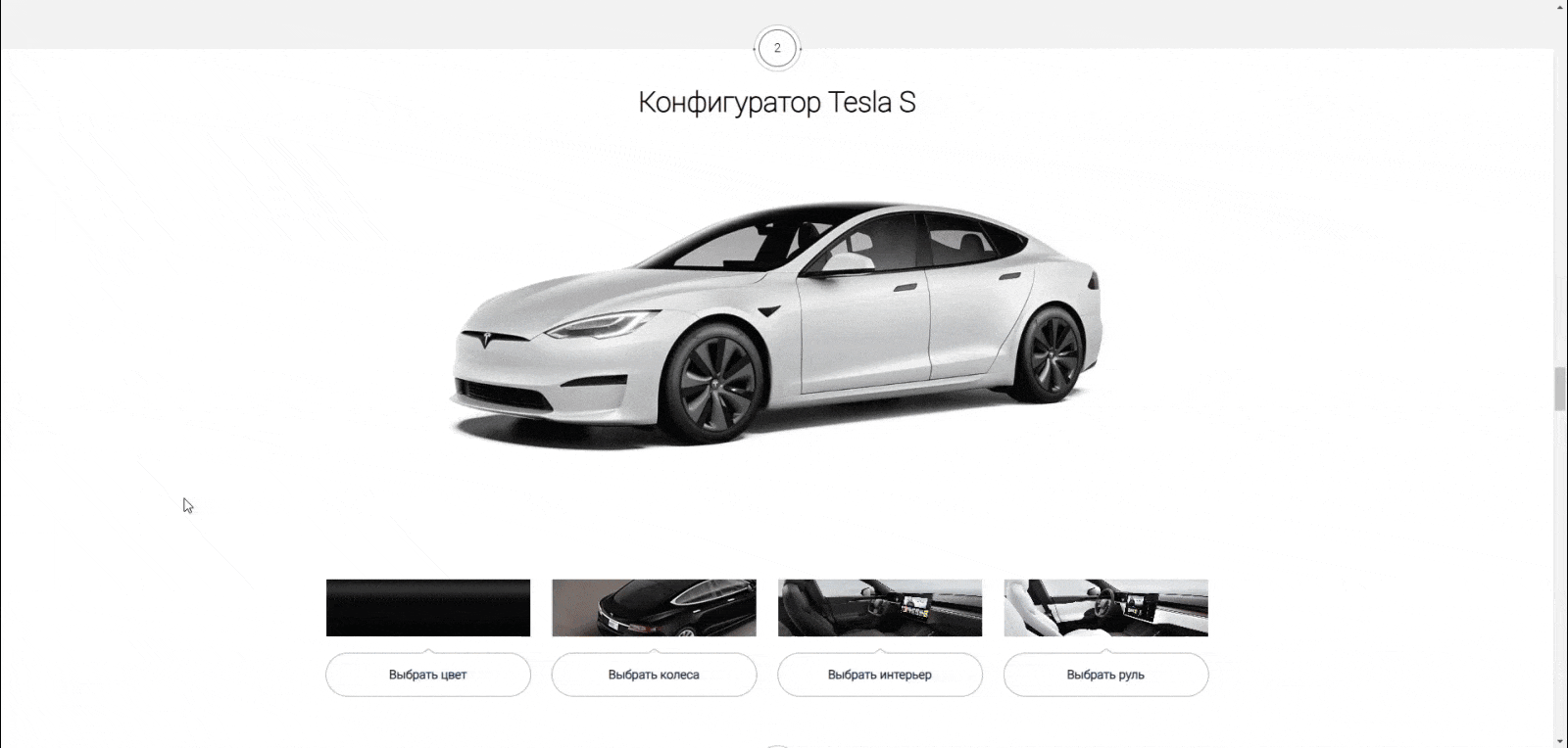 Одна из важных задач — дать возможность пользователям создавать свою идеальную Теслу. Мы разработали конфигуратор, где каждый клиент может выбрать параметры своей машины: