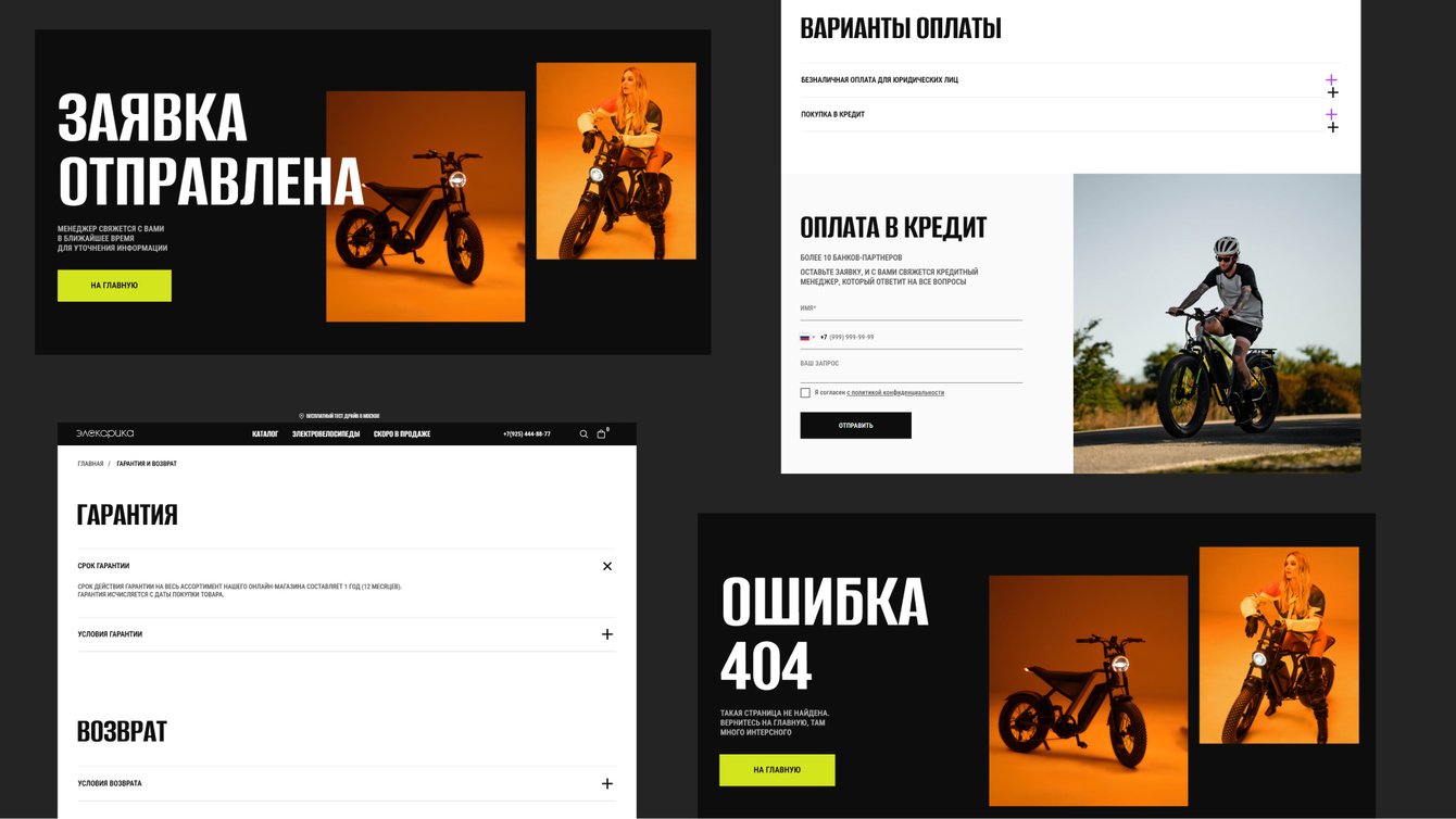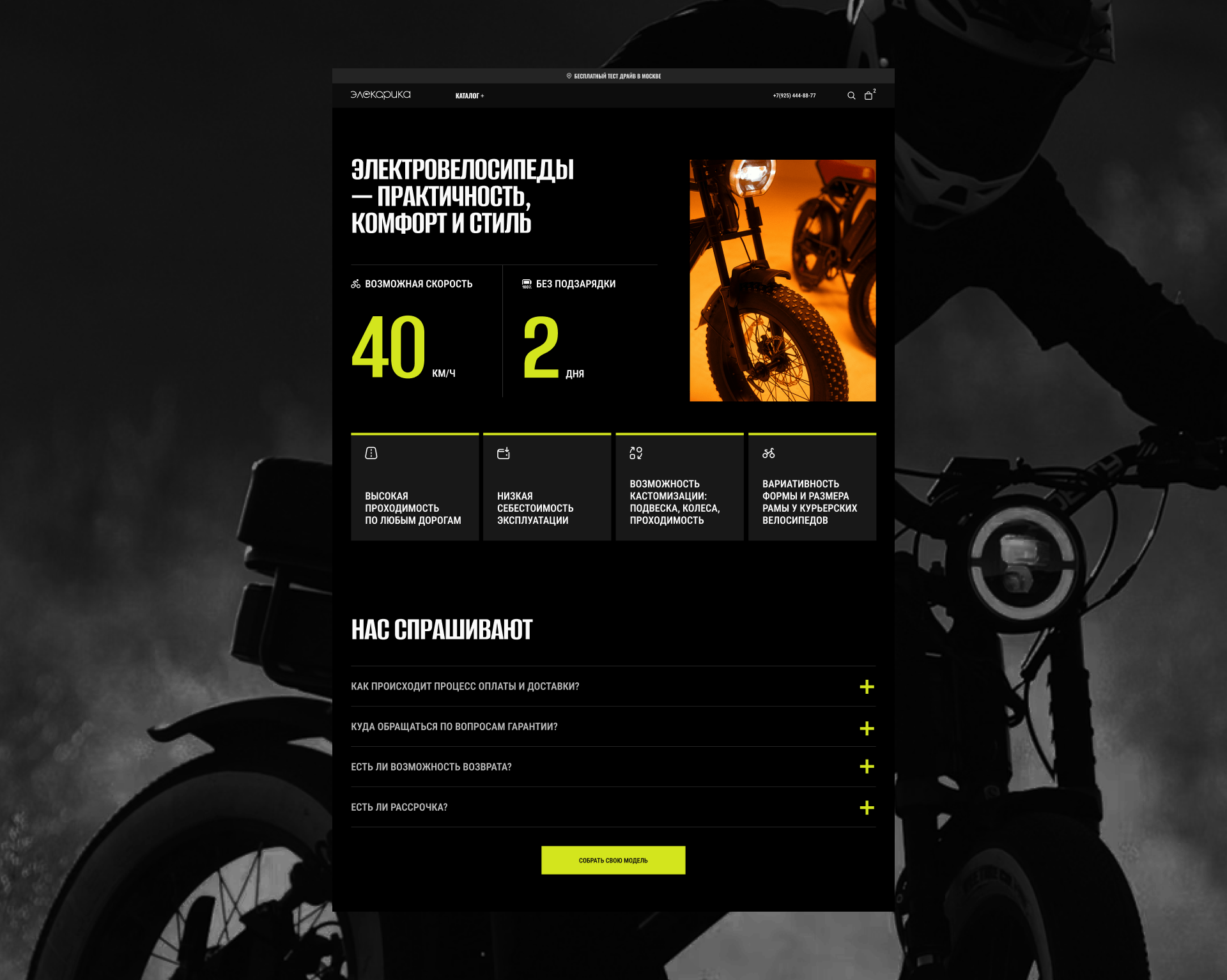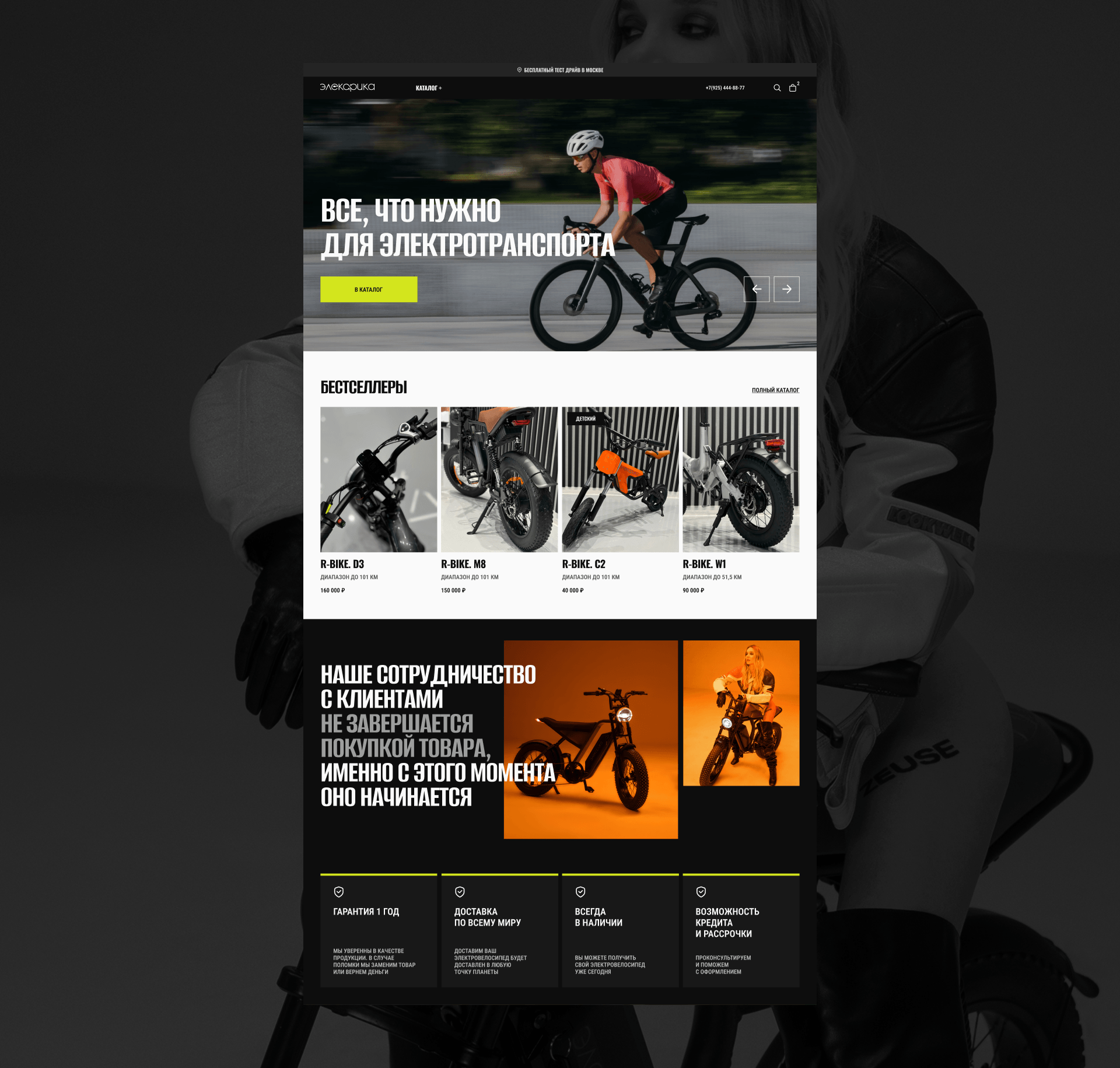 Сайт работает как витрина, в которую хочется заглянуть. Он не только показывает продукцию, но и передаёт эмоцию. Через цвет, ритм и атмосферу мы рассказали, что электротранспорт — это не просто прихоть, а стиль жизни, свобода и удовольствие.