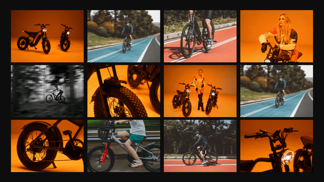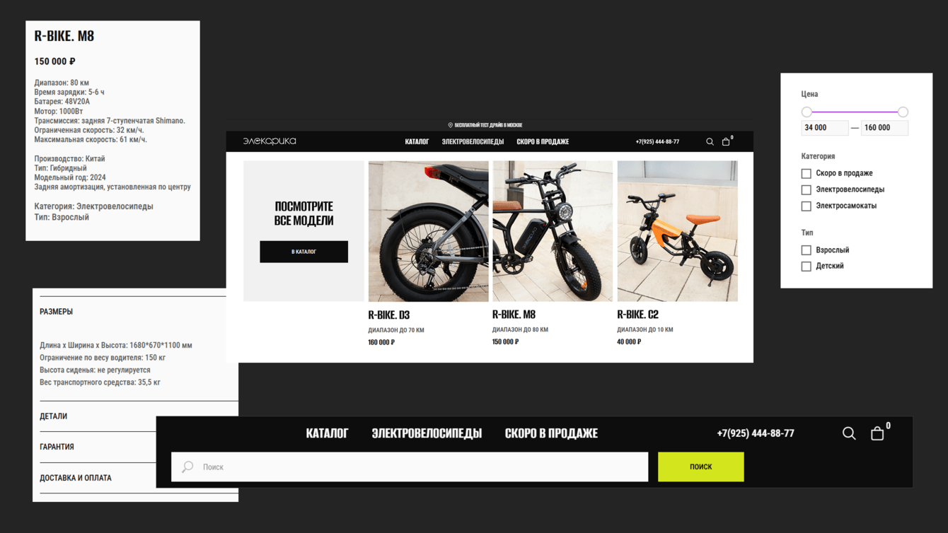 Мы начали с брифа и изучения продукта: что важно покупателям, чем бренд отличается от конкурентов, какие модели самые продаваемые. Из брифа поняли УТП проекта: делаем уникальное доступным. Электровелосипеды и электросамокаты — достаточно дорогой товар, а заказчик собрал модели, которые потребитель может себе позволить.