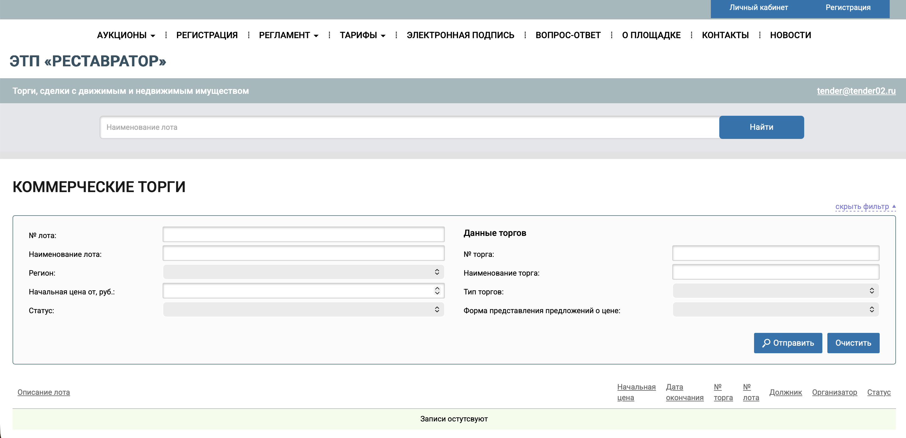 На площадке проводятся коммерческие торги для реализации собственного имущества и поиска подрядчиков.