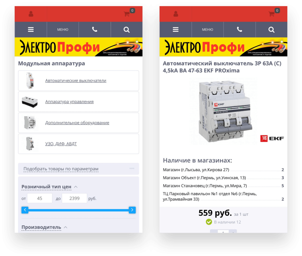 - Быстрый поиск по названию, коду товара и бренду
