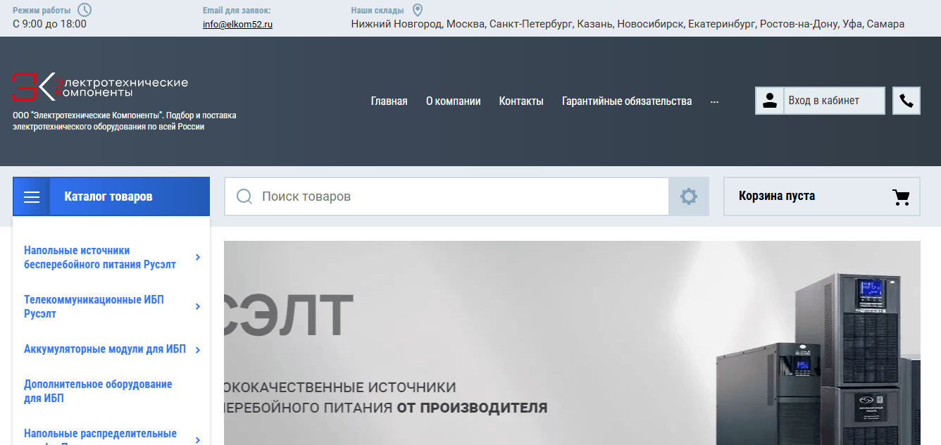 Клиент: компания по продаже электротехнического оборудования