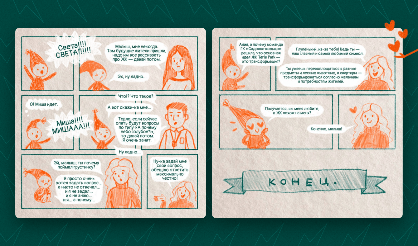 Для формирования имиджа комплекса и увеличения лояльности аудитории готовили публикации в нетипичном для застройщика стиле — например, комиксы с эльфом, нативно интегрируя в них УТП бренда, и создавали залипательные моушны и 3Dшки.