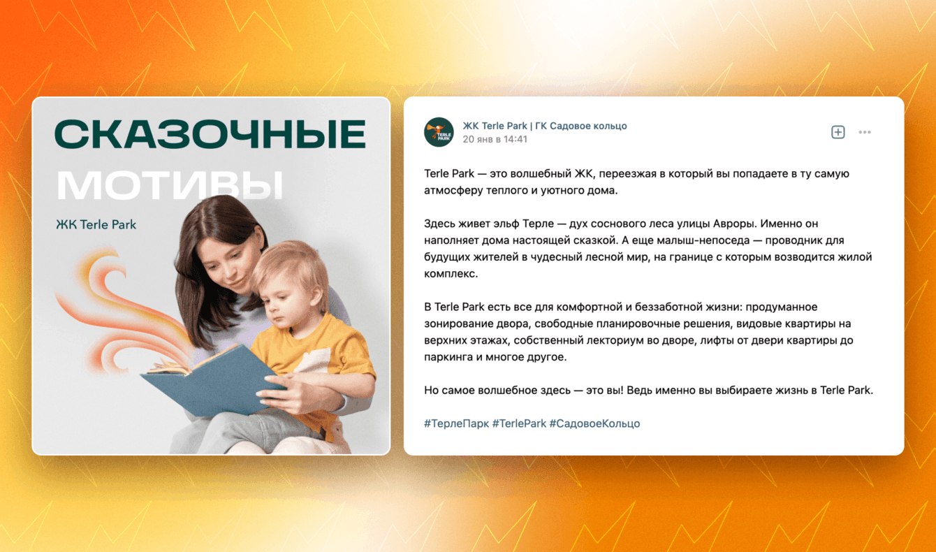 У девелопера есть еще один проект в Уфе — ЖК Tau House. Его соцсети более развиты и на них подписано больше горожан. С помощью совместных публикаций привлекали целевую аудиторию в аккаунты Terle Park.