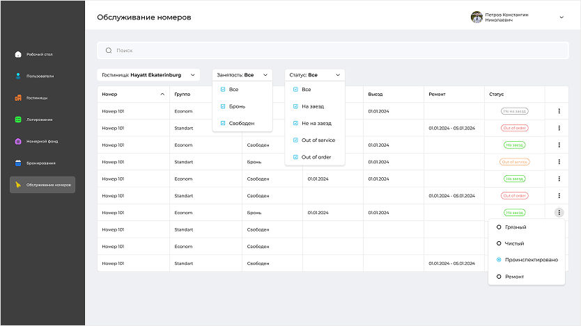 6. Система управления работой горничных, техников и всего персонала, который выходит на работу, в перерывах между заездами гостей.