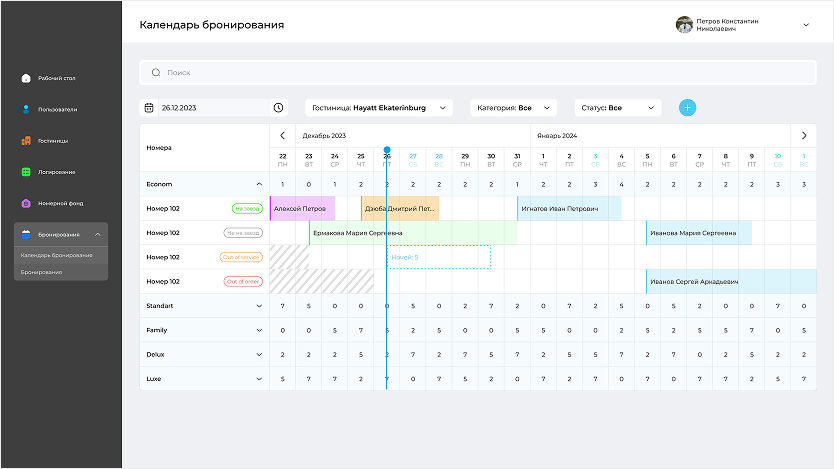 5. Календарь, шахматка… весь необходимый для оперативного управления бронированиями, заселением и выездом гостей функционал.