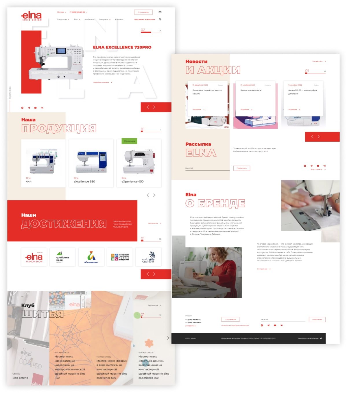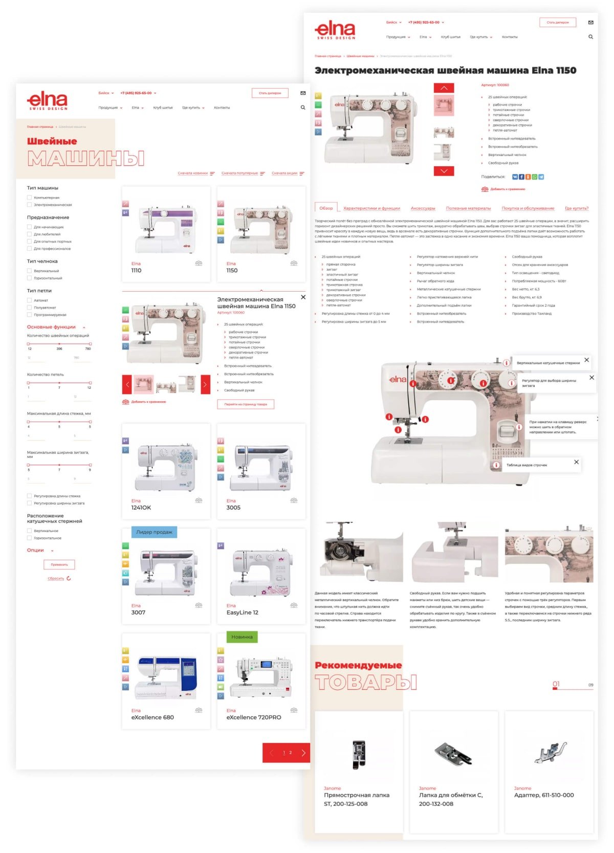 Компания «ЭЛФОРТ» — официальный дистрибьютор двух брендов швейных машин. Раньше мы делали онлайн-каталог для бренда Janome, пришла очередь и для второго — Elna.