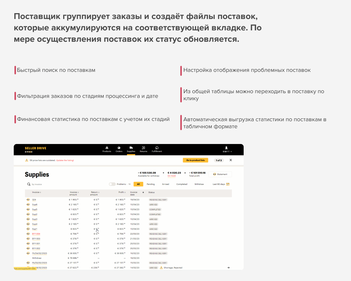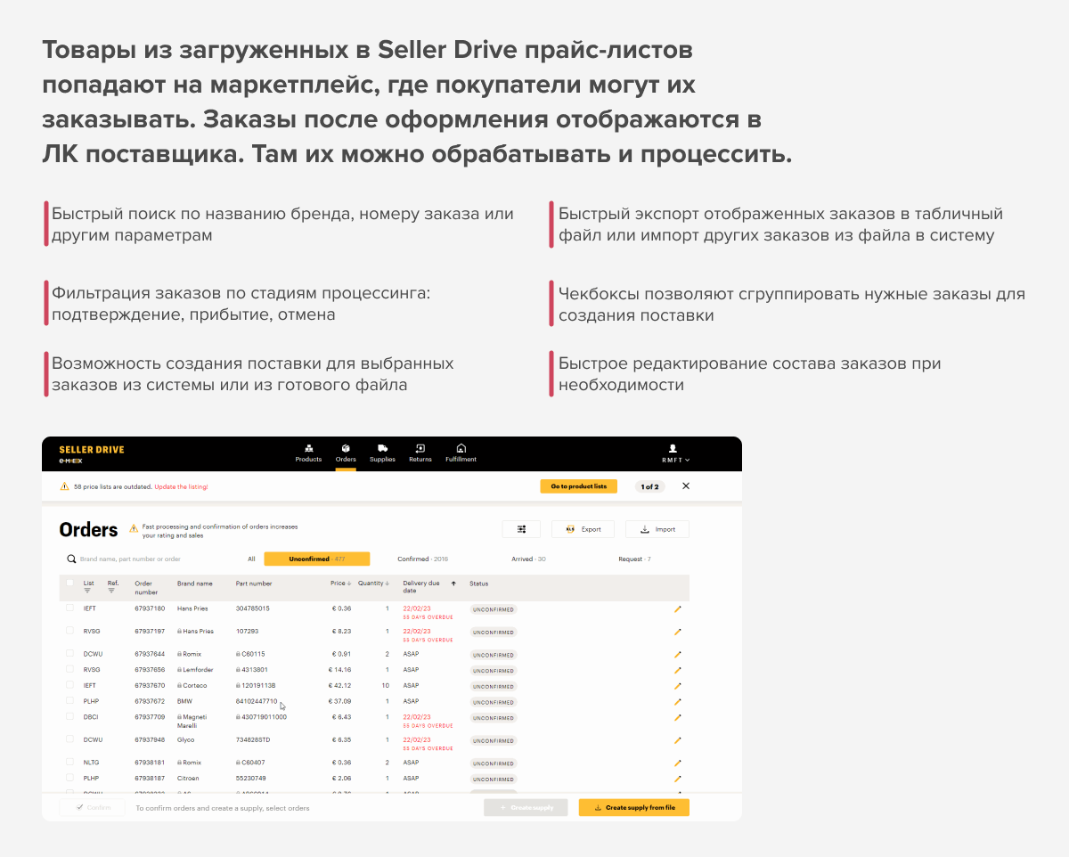 Основной проблемой Seller Drive были большие трудозатраты на её использование. Из-за того, что она не соответствовала бизнес-процессам Emex, многое в ней приходилось делать/решать/исправлять вручную вне системы. Например, если поставщики совершали какую-либо ошибку при загрузке списка товаров, при обработке заказов или работе с претензиями покупателей, справиться самостоятельно с ней они не могли. Приходилось подключаться специалистам со стороны Emex.