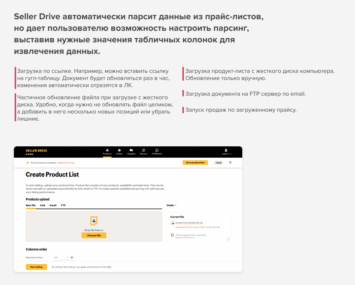 - прояснить и описать сценарии, по которым должна будет работать новая версия Seller Drive;