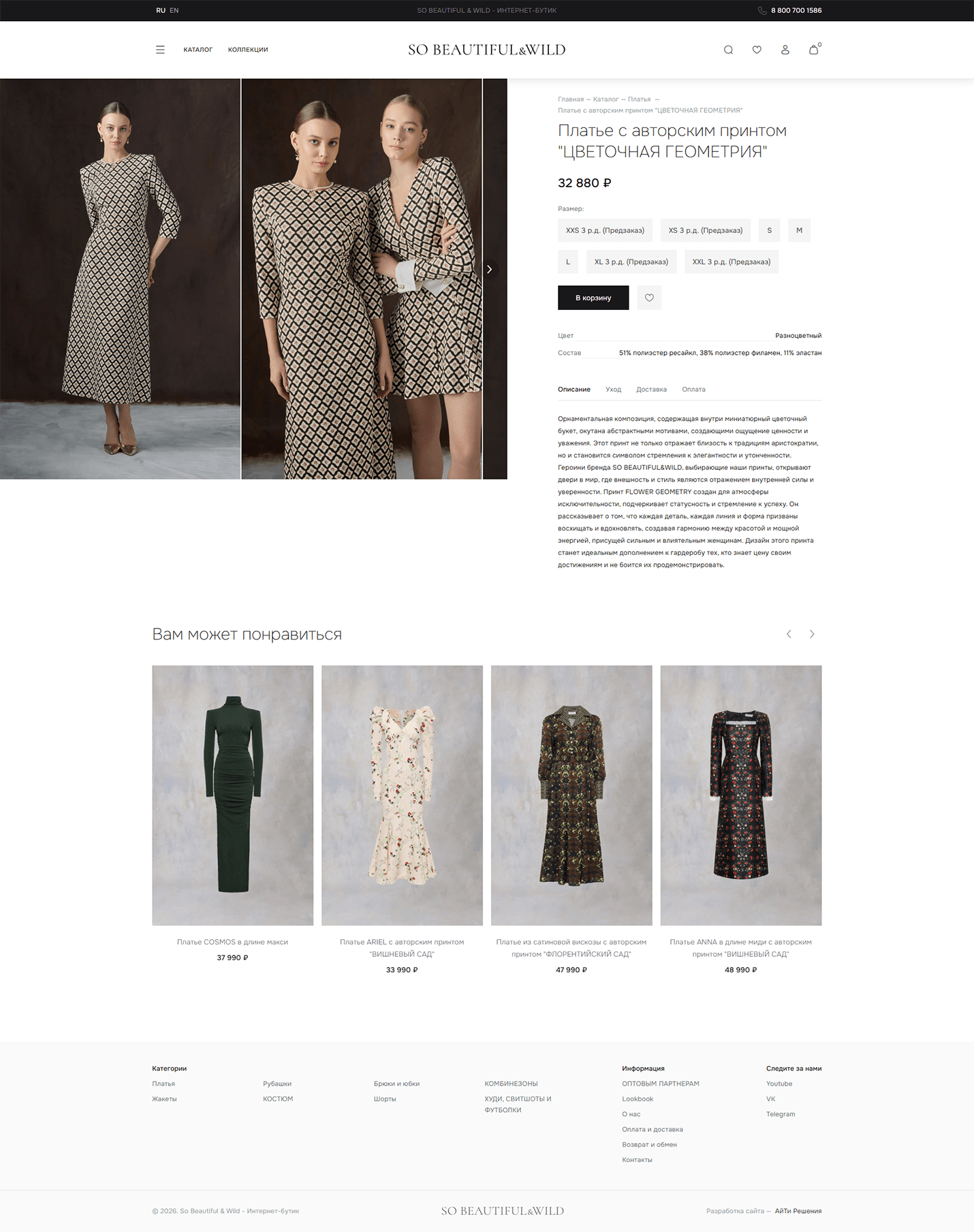 So Beautiful & Wild - это цифровой бутик, где каждая деталь, включая динамичный видеоконтент, работает на то, чтобы покупательница чувствовала себя именно такой — so beautiful&wild.
