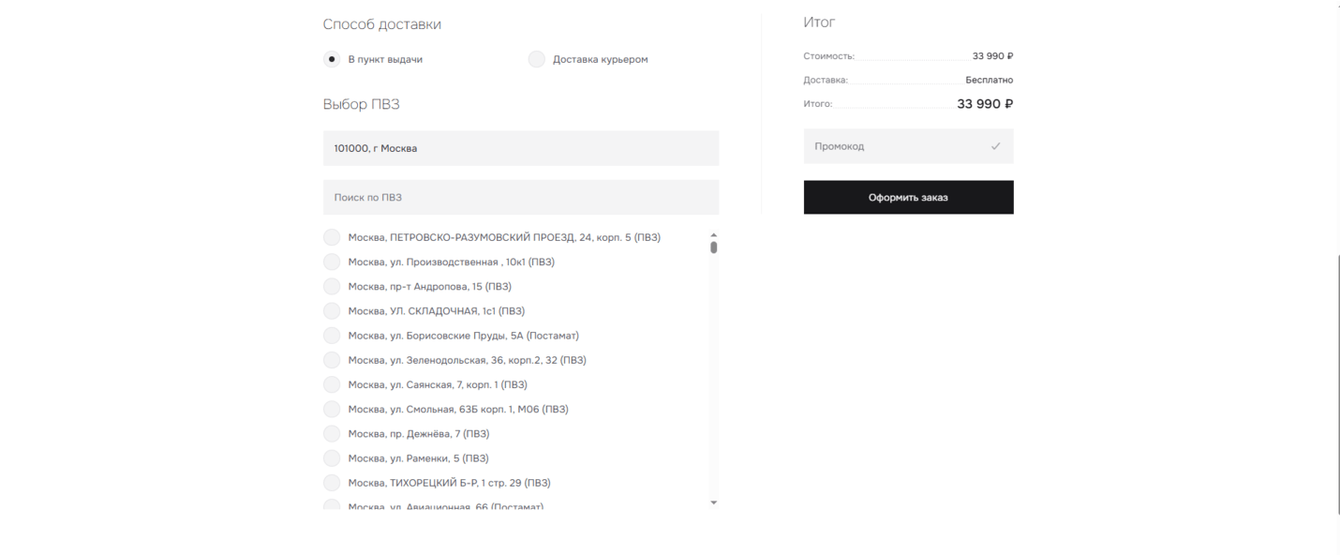 • Подключили API СДЭК для удобного выбора пункта выдачи, что сделало процесс доставки прозрачным и предсказуемым.