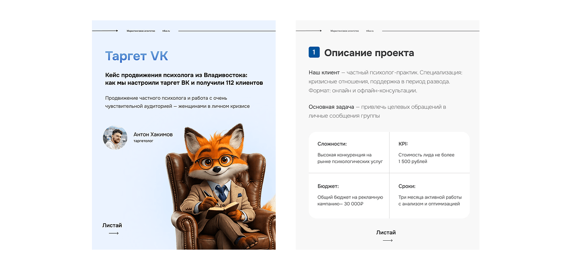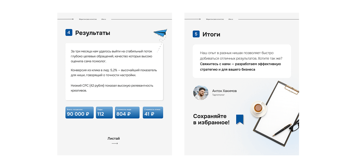 «Кампания подтвердила, что продвижение личных услуг строится не на агрессивных продажах, а на создании безопасного моста между болью клиента и помощью эксперта. Правильно подобранные слова, образ и первый шаг в виде микрополезности оказываются эффективнее любого прямого предложения о покупке»