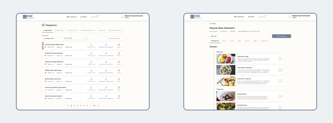 Для удобства и с целью повышения качества услуг была поставлена задача автоматизации сбора заказов еды, учитывая специфику: не все пациенты могут произвести заказ самостоятельно, а многим требуется своя, особая диета.