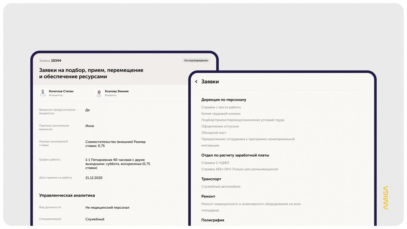 Разные категории сотрудников видят разную информацию. Если ты медицинский сотрудник, у тебя одно меню. Если административный — другое. При этом в основное меню выводится та информация, которая нужна пользователю в первую очередь.