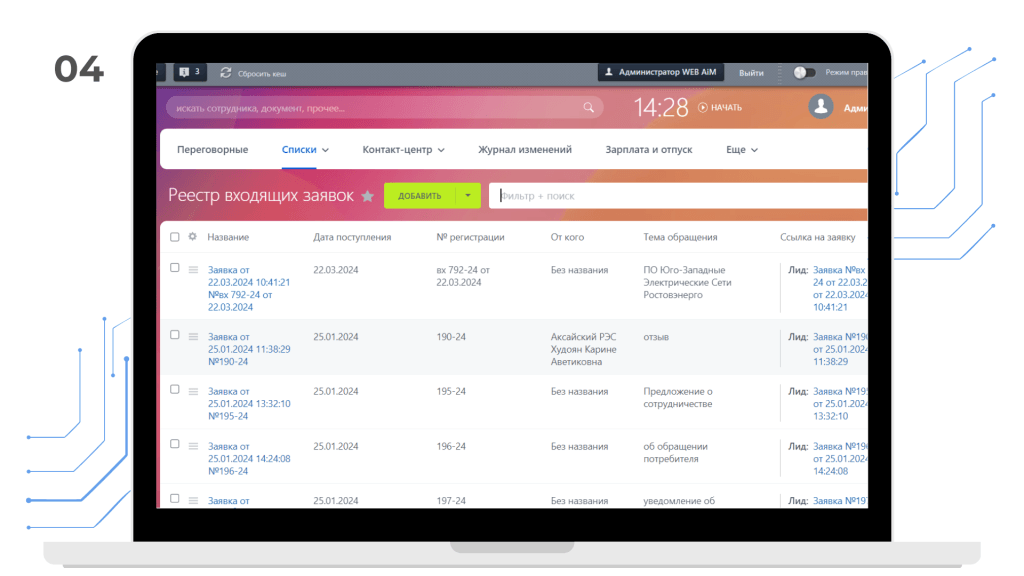 Реестры для входящих и исходящих заявок