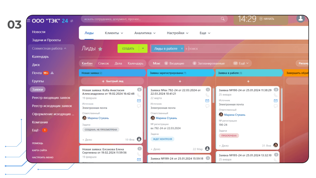 Настроили воронку Лидов (Заявок) для обработки зафиксированных обращений и автоматизировали данный процесс, что позволило значительно упростить работу сотрудникам компании и больше никогда не "терять"Лиды (Заявки)