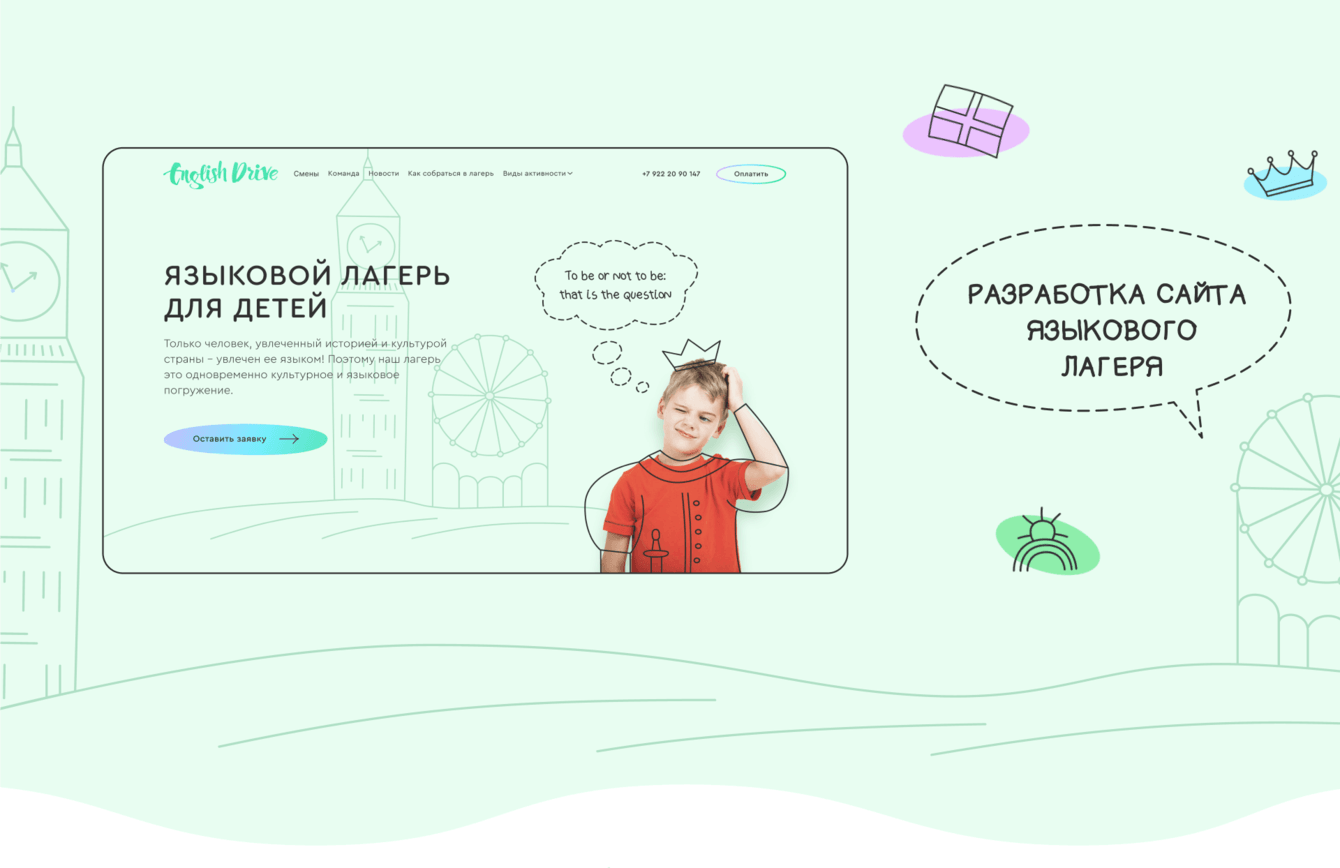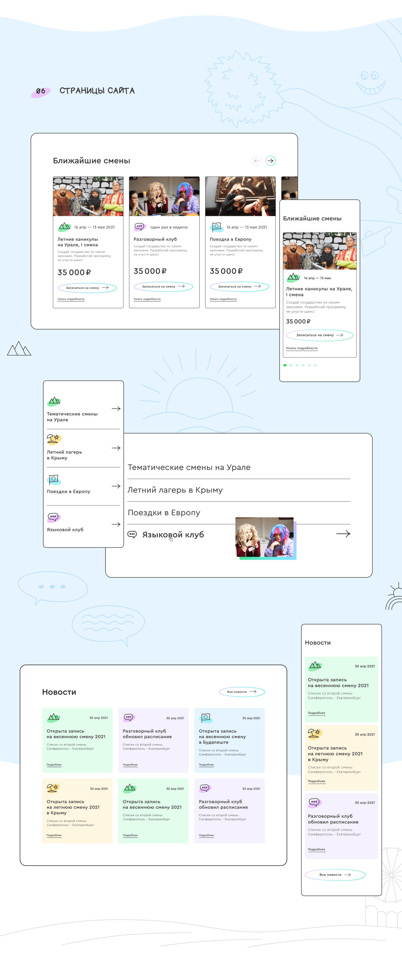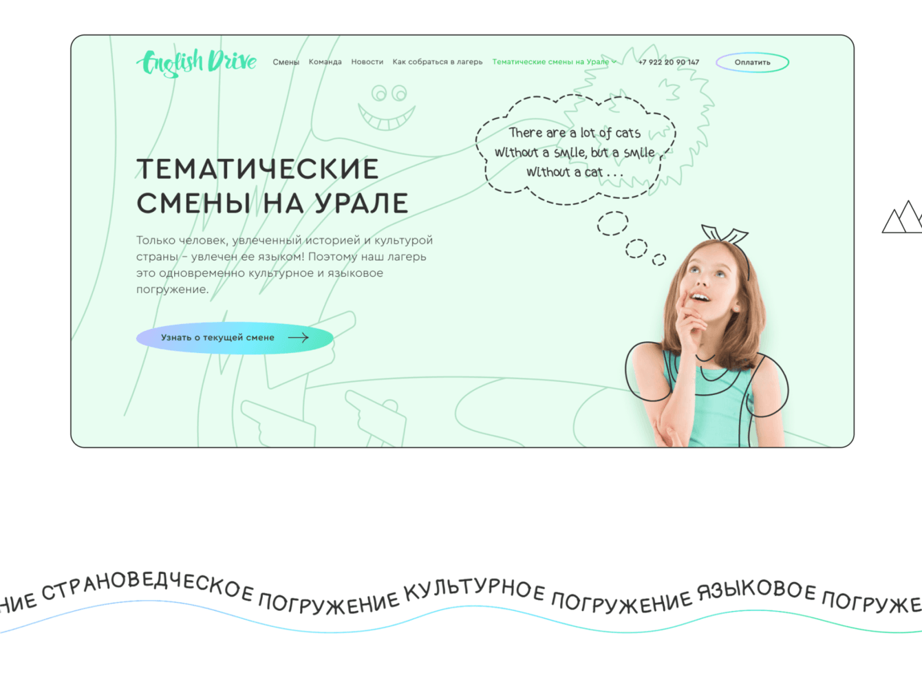 Дизайн сайта получился яркий, оригинальный и современный отражающий приключенческий дух языкового лагеря. Теперь посетители сайта смогут проникнуться атмосферой места и быстро найти информацию обо всех направлениях проекта.