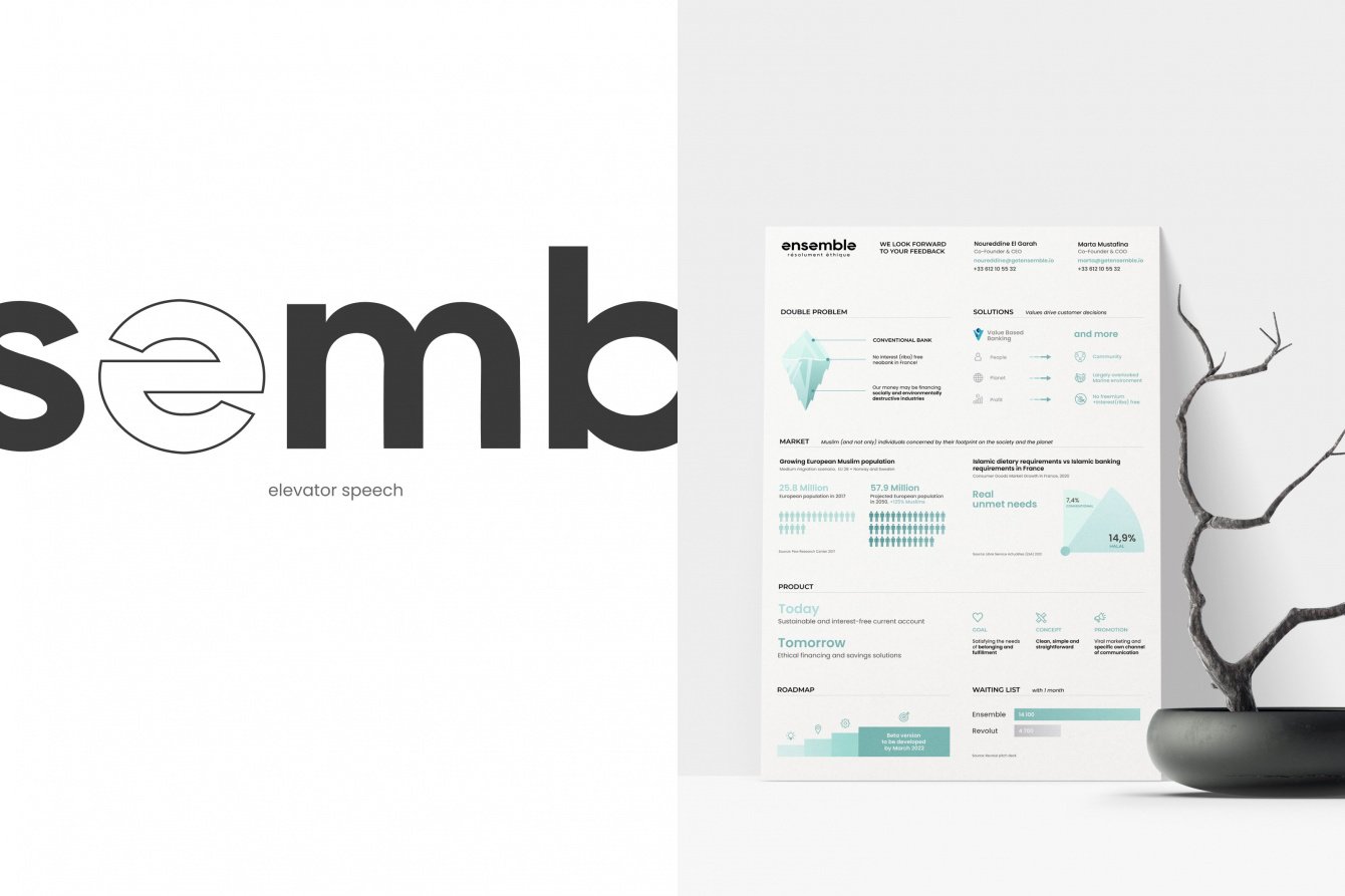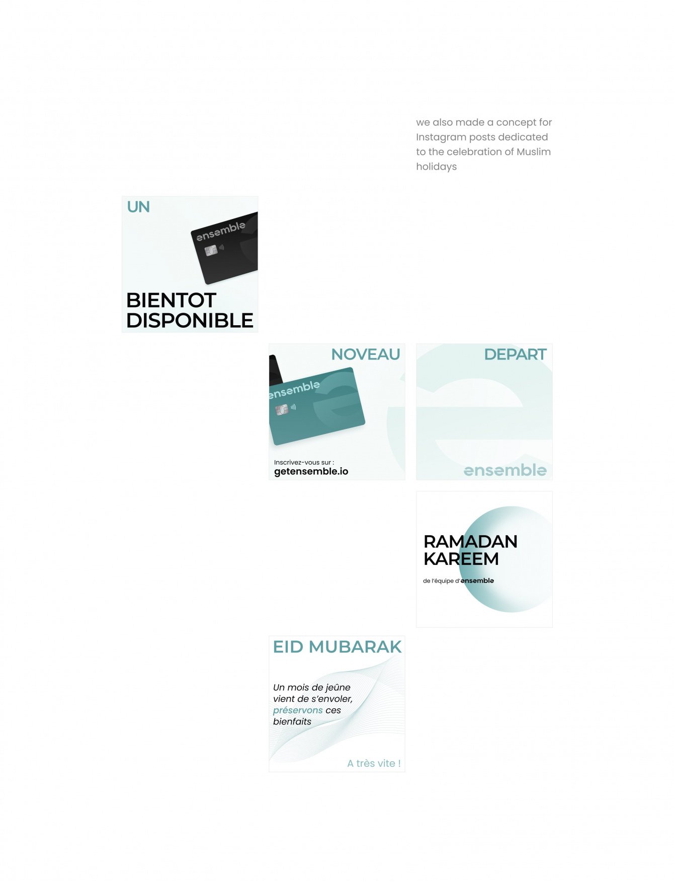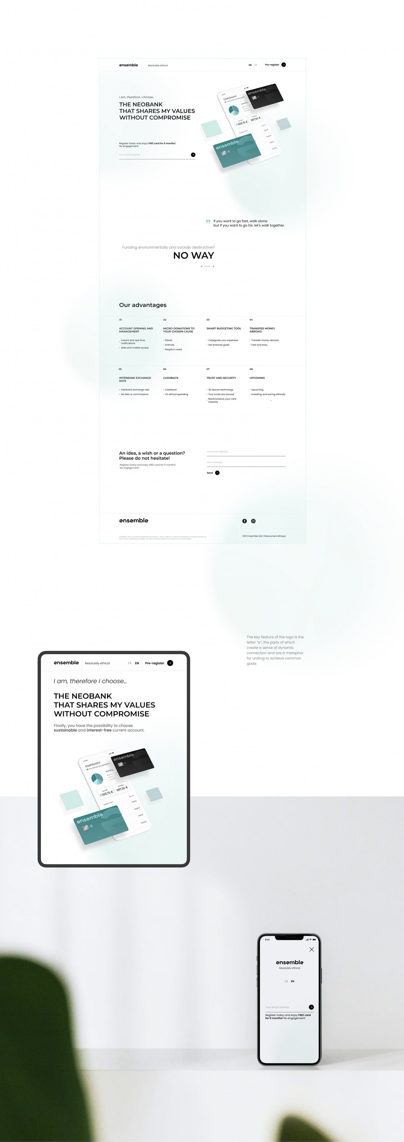 Клиент: "Наш бренд и фирменный стиль для клиента должен ассоциироваться с минимализмом, чистотой, быть современным, в стиле fintech и запоминаться какой-то своей изюминкой в стиле и графике. Должен подразумеваться дух общности, единения" (фр. ensemble – вместе).