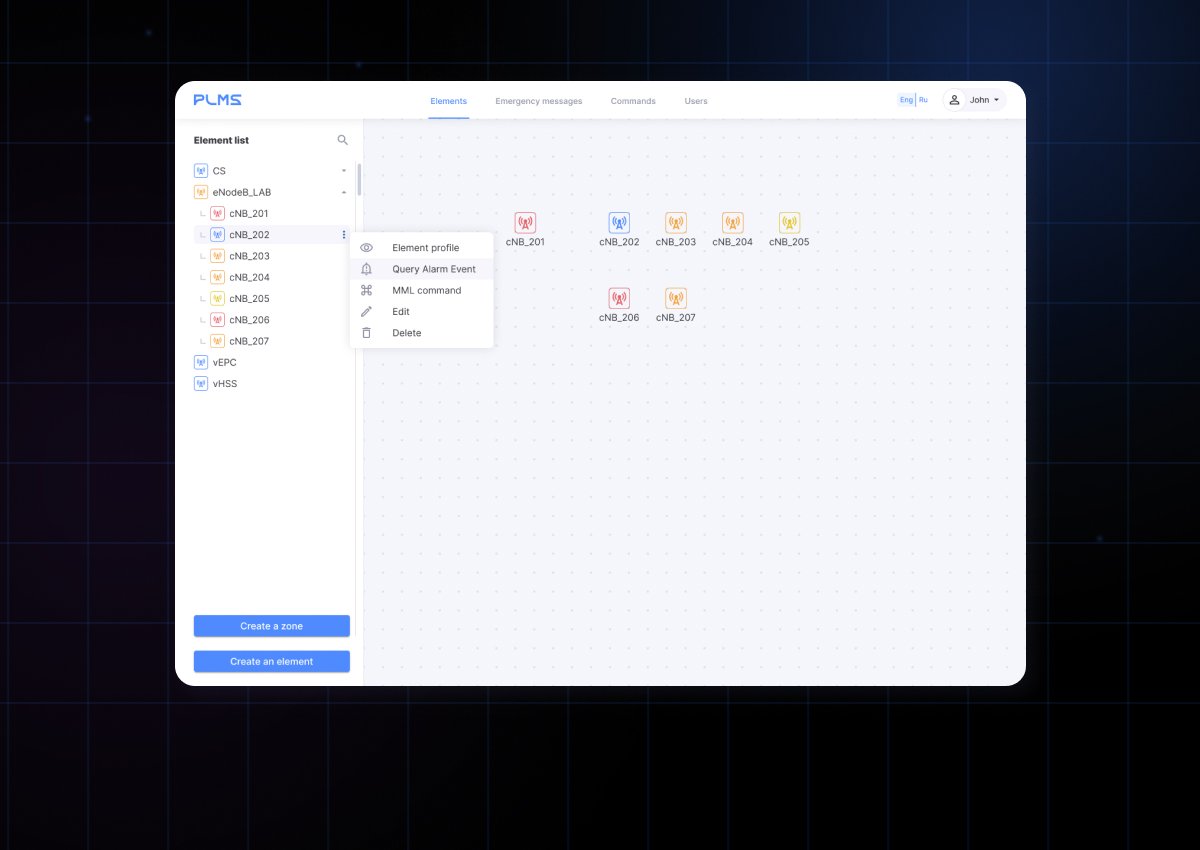 Private LTE Management Systems (PLMS) — enterprise web-приложение для управления и мониторинга сетевой инфраструктуры сотовой связи. Разработано для компании-разработчика ПО для операторов и интеграторов телеком-инфраструктуры.