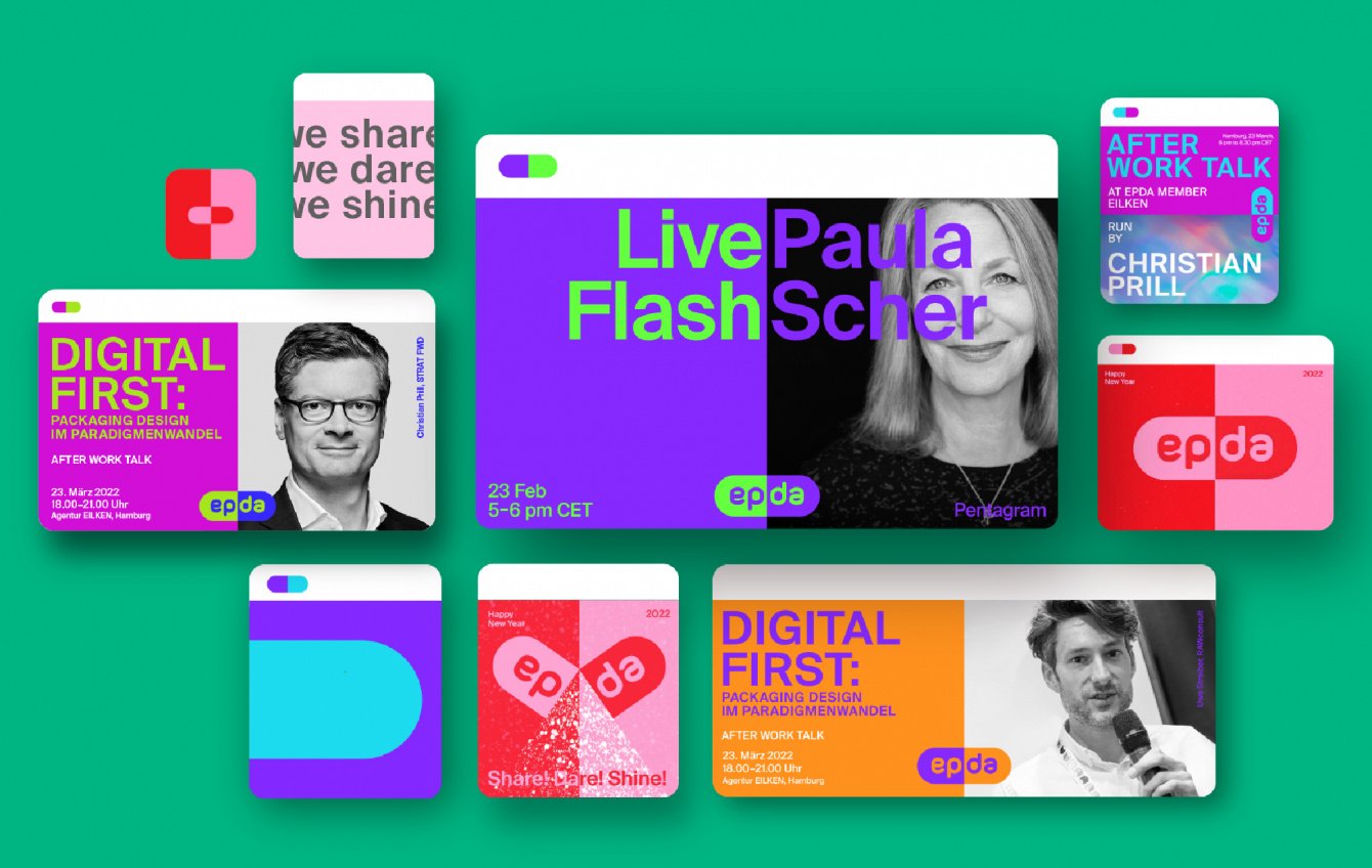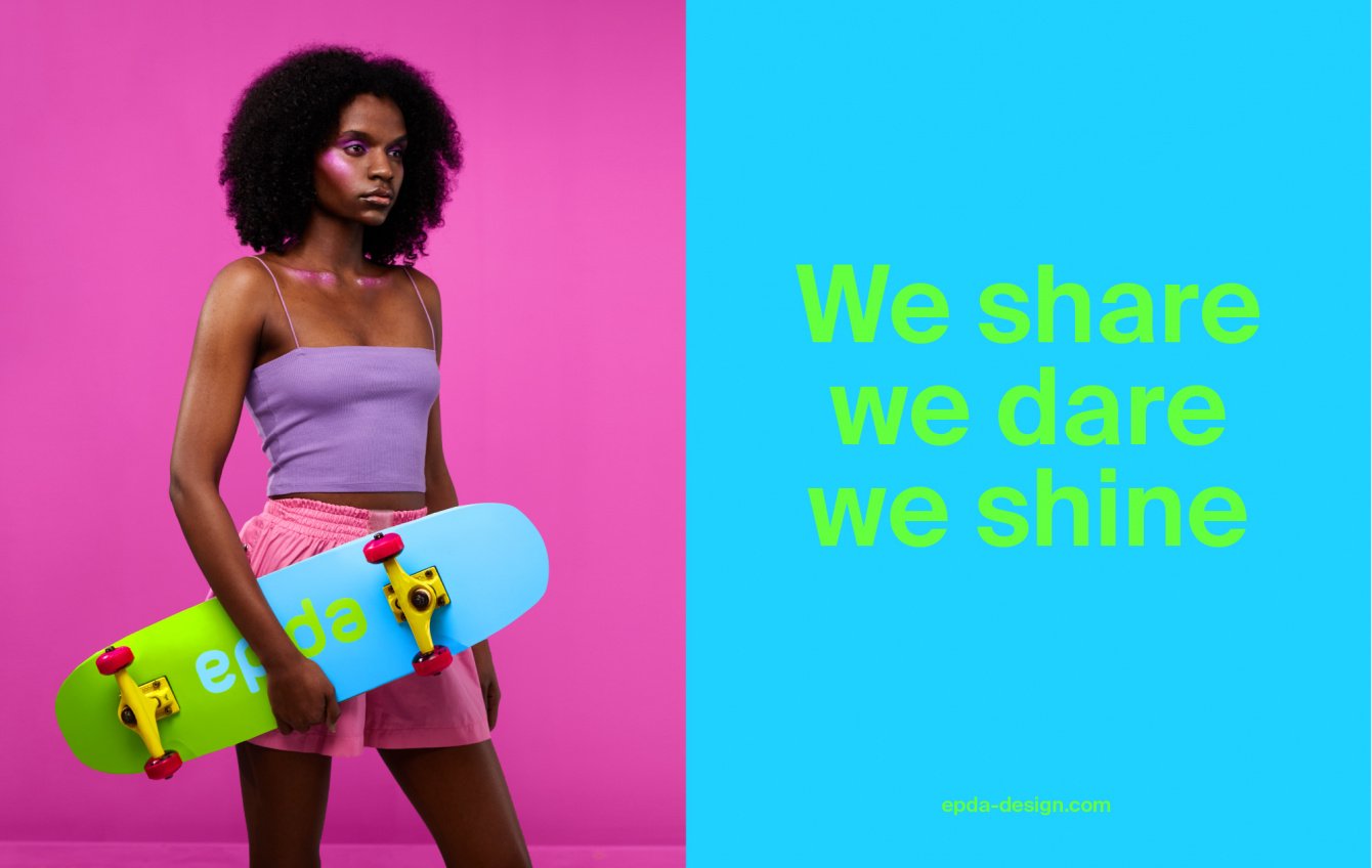 Мы разработали дизайн нового фирменного стиля ассоциации. Две половинки капсулы символизируют взаимную ответственность — ключевой момент связи между профессионалами в области дизайна, любовь — хорошее отношение к коллегам, креативность — простые и эффективные решения, и открытость — отсутствие страха выражать мысли. Яркие цвета помогают точнее раскрыть слоган ассоциации: we share, we dare, we shine. Фирменный стиль выражает главную мысль, одинаково понятную на любом языке: взаимопомощь и связь лежат в основе сущности EPDA. Коммуникация помогает создать коллективную культуру и укрепить чувство общности и дружбы.