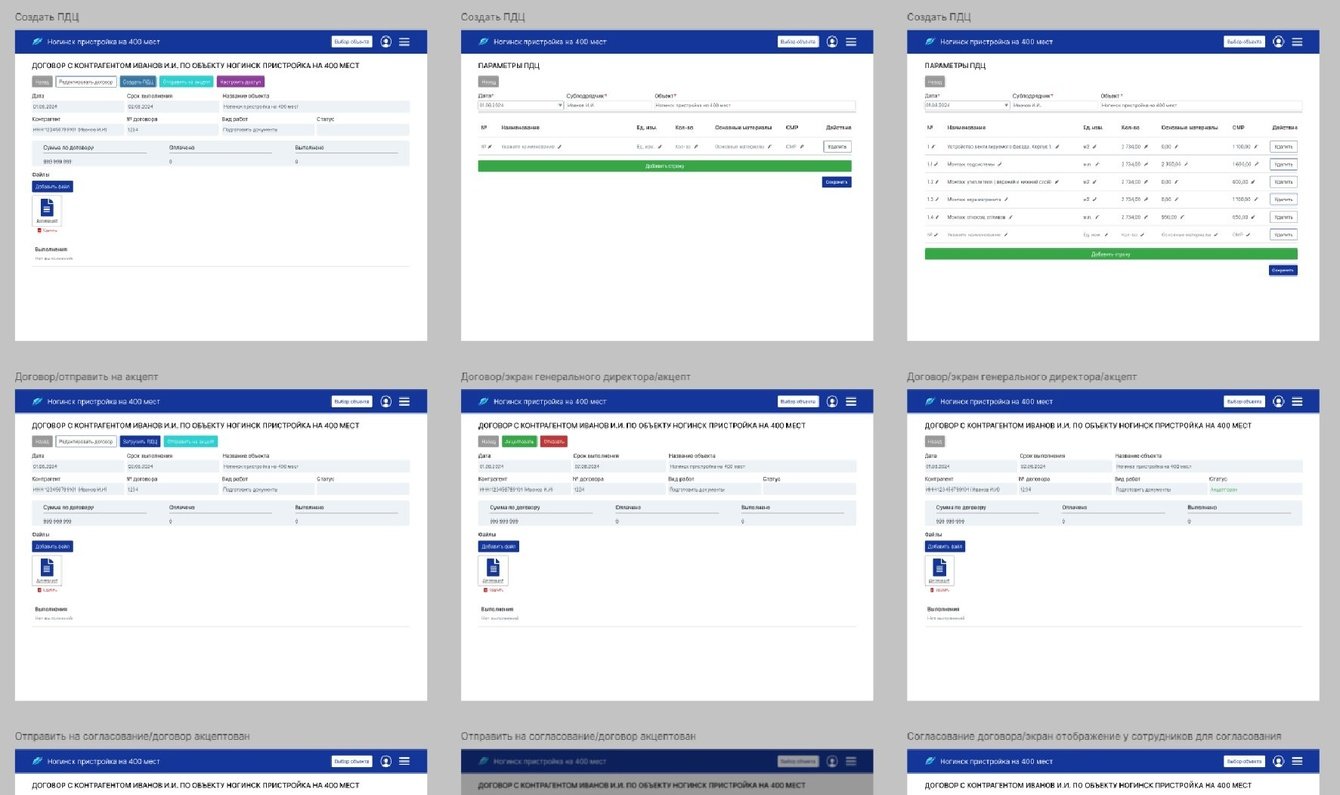 Есть возможность формировать заявки на технику, материалы, отправлять фото и видеоотчеты объектов, загружать договора и выгружать закрывающие документы, соответствующие регламентам и требованиям.