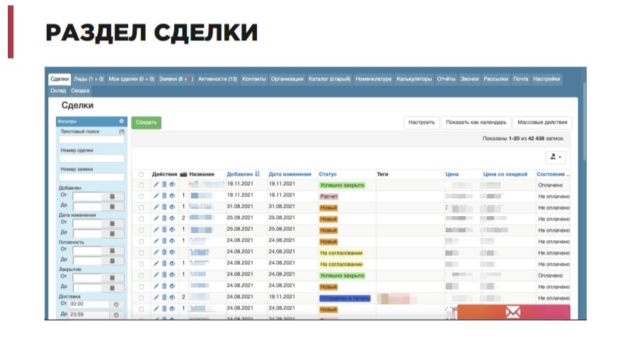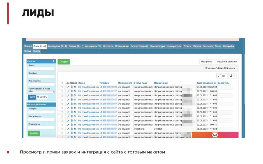 - Интеграция CRM системы с 1С, что позволяет импортировать данные о контрагентах, а также получать отчеты о продажах, посещаемости и собирать другие текстовые и количественные данные.
