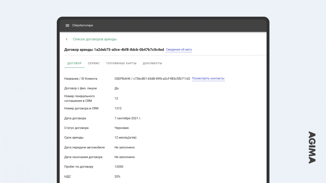 В нем содержится информация по всем контрагентам компании, включая дилеров, страховщиков и т. д. Сервис позволяет централизовать информацию по контрагентам и связывает их со счетами, поставками и управлением автомобилями.