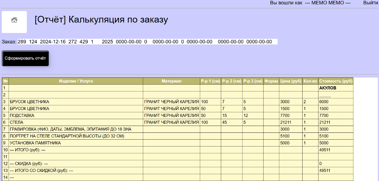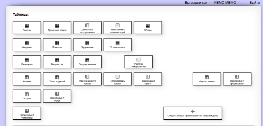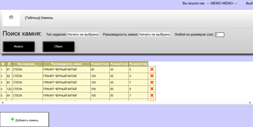 По итогу проекта можно сказать следующее: разработана реально работающая система учета, позволяющая отслеживать остатки камня, вести анализ и планирование деятельности на основе двух десятков отчетов, разработанных с учетом специфики сферы.