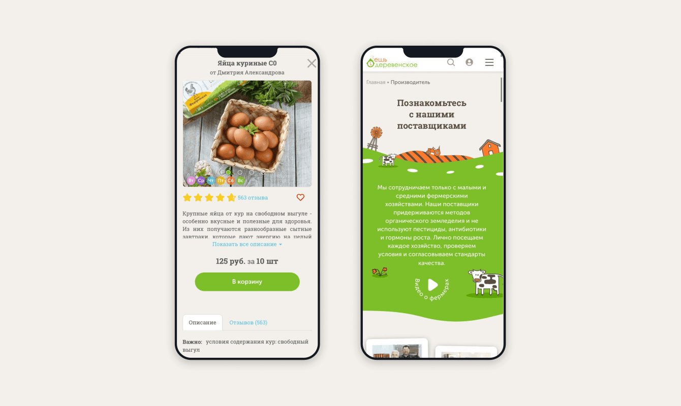 Создать мобильное приложение на основе сайта “Ешь деревенское”.