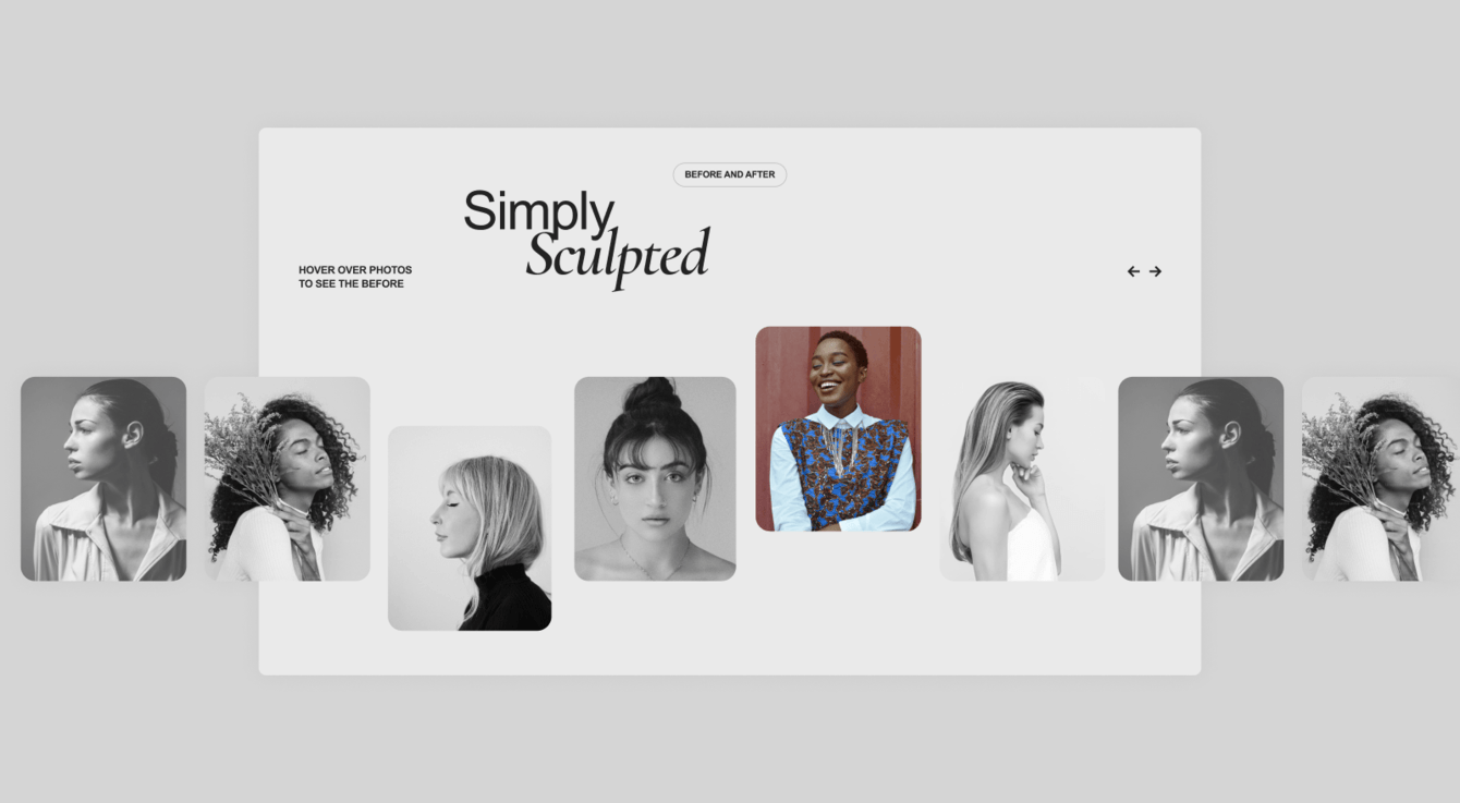 С помощью такого приёма мы сопоставили красоту совсем не мраморных женщин со скульптурами великих мастеров античности. Цель нашего сайта заключалась в сравнении результата от услуг клиники с идеалом красоты.