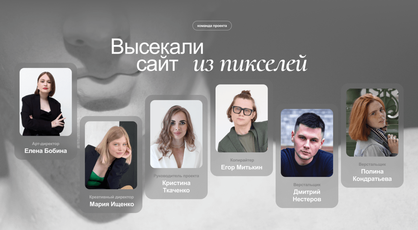 С помощью манипуляций с начертанием текста удалось продемонстрировать смену образа: от прямоты до изящности линий. Одним словом, продолжили идею эстетики даже в не самых визуальных аспектах сайта.