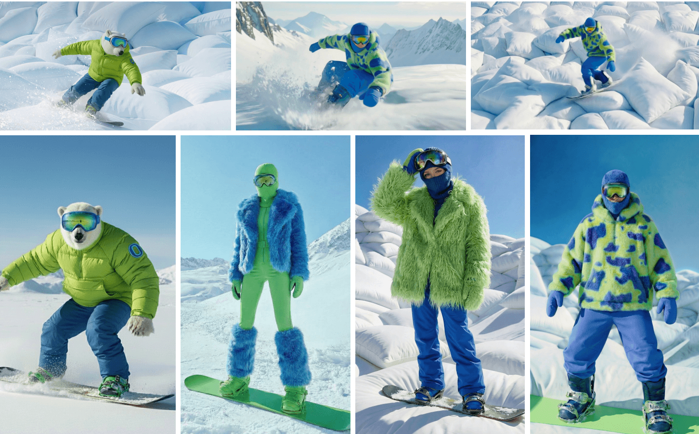 Проект мы начали с нуля. Сначала придумывали персонажа, вокруг которого строится весь ролик. Было много вариантов — пробовали и животных, и людей, — пока не нашли образ сноубордиста, который подходит по настроению и хорошо работает в наружной рекламе.