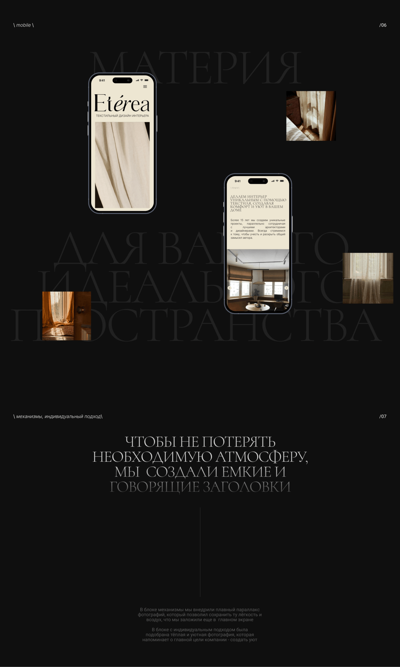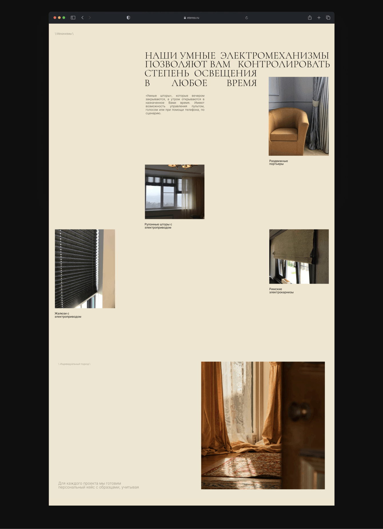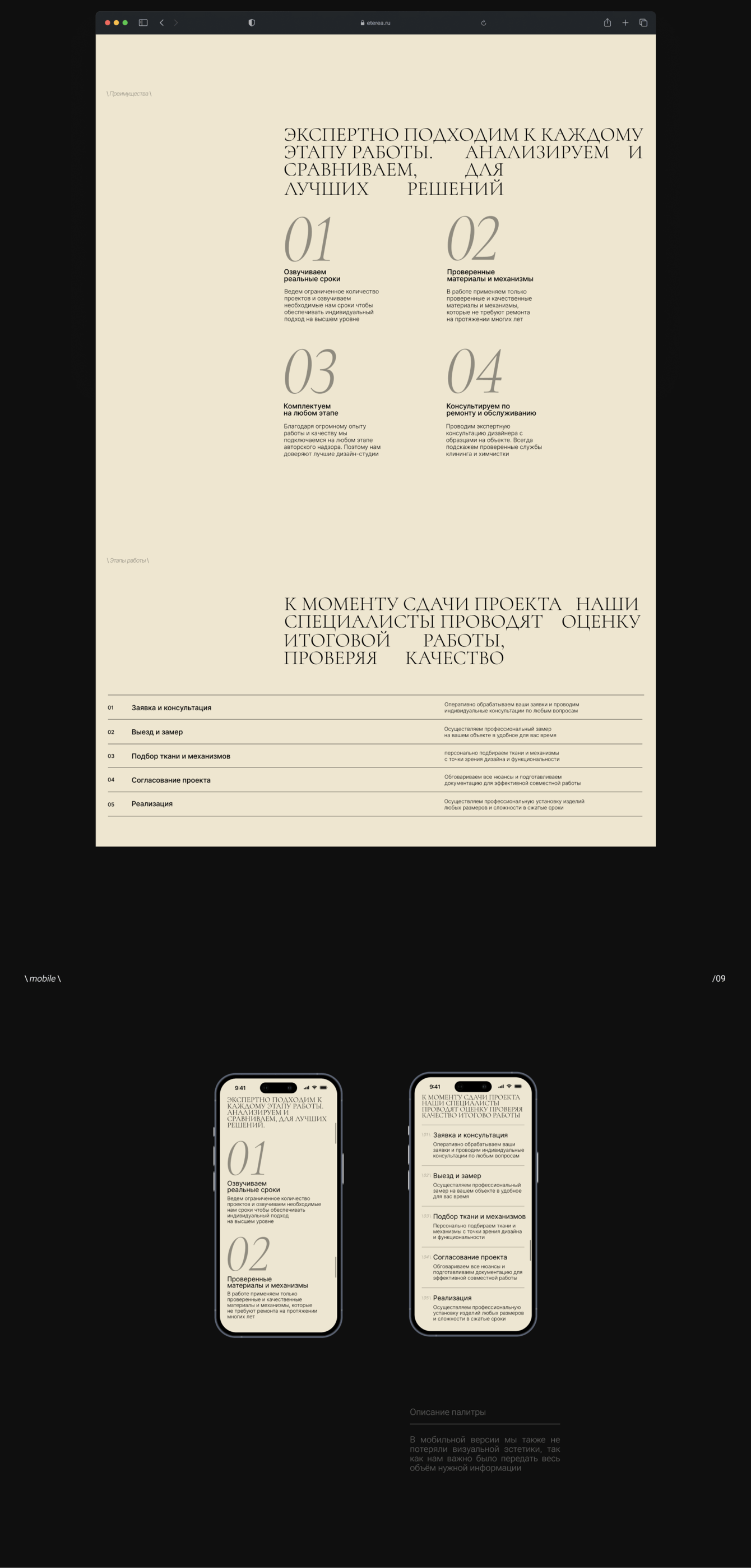 за основу проекта были взяты старые глянцевые журналы о мебели из которых мы подчеркнули выверенную журнальную верстку и теплую и уютную атмосферу.