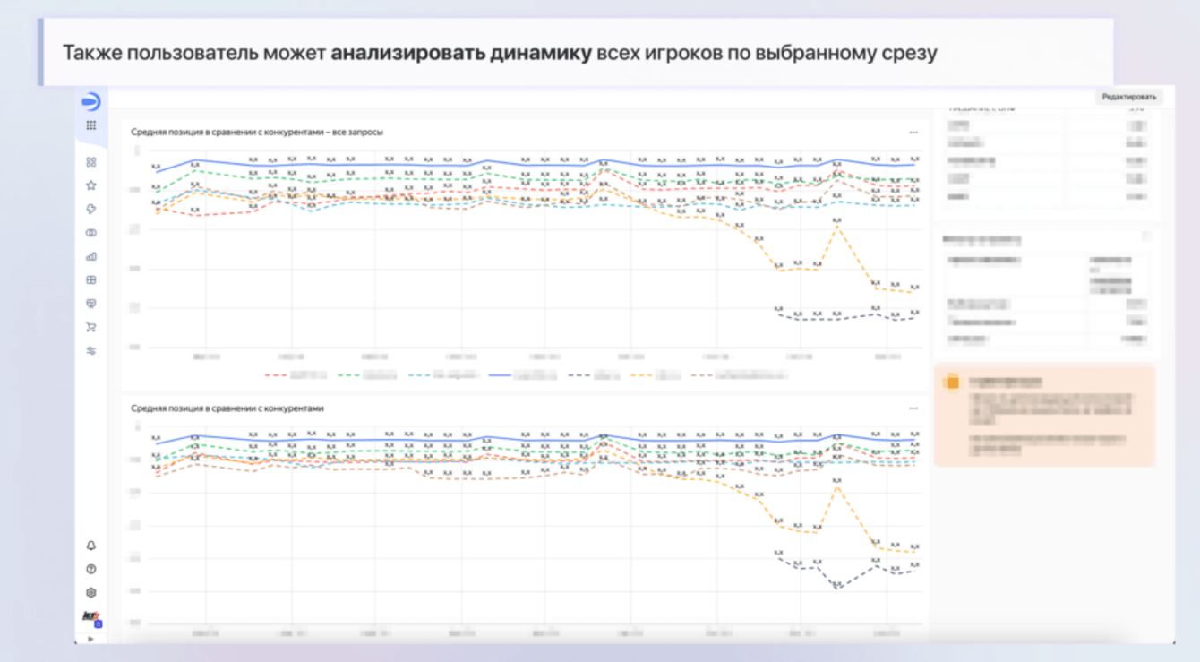 3. Идентификация точек роста и проблемных зон: дашборд показывает динамику роста по группам запросов и позволяет оперативно выявлять резкие падения позиций по отдельным группам, что дает возможность своевременно принимать меры.