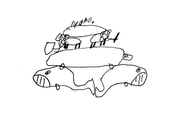 Чтобы вы понимали, как проходит наш мозговой штурм, небольшая зарисовочка. «Уверенность, прочность, изумрудный, щит, рука помощи, голубь над зоной, ключи, солнечная система, слон, равносторонний треугольник, киты на черепахах, мозговой штурм окончен, всем спасибо».