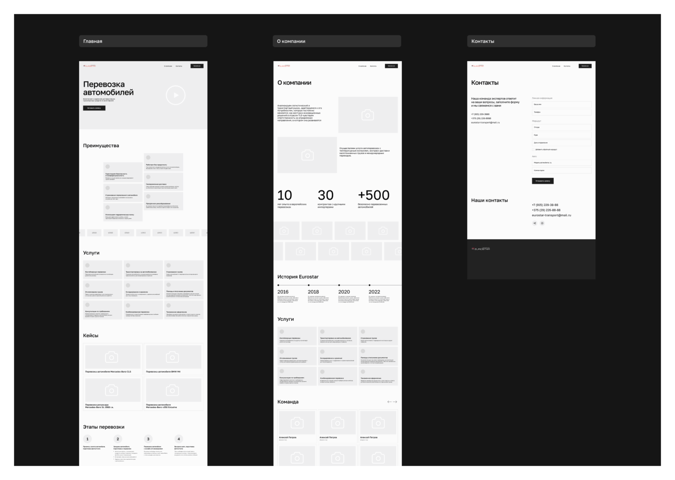 На этапе проектирования мы тщательно исследовали рынок автомобильных перевозок в Европе и создали структуру сайта, сосредоточившись на актуальности и удобстве каждого элемента. Мы разработали User Flow для разных сегментов целевой аудитории, чтобы обеспечить плавный путь к их целям. Сделали эффектным главный экран для привлечения внимания и четкого представления компании, разместив за ним блок с услугами для быстрого понимания предложения и раздел с кейсами, демонстрирующий экспертность компании через успешные проекты.