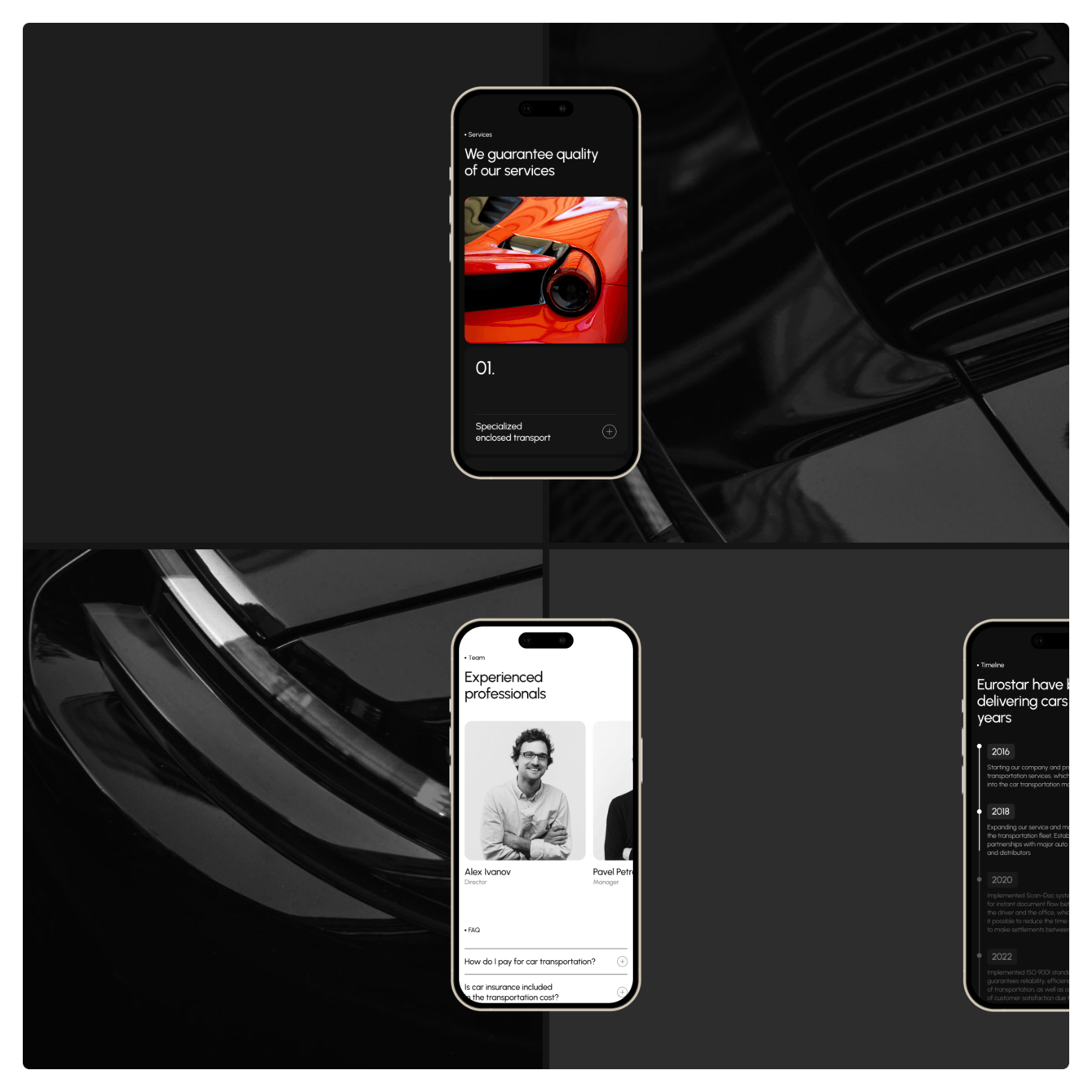 Наша задача заключалась в разработке уникального сайта, который ярко отразит позиционирование компании и её ключевые преимущества. Фокус был на том, чтобы подчеркнуть сотрудничество с премиальными клиентами и перевозку эксклюзивных автомобилей, наполнив каждый элемент дизайна энергией и стилем, которые не оставят равнодушным ни одного пользователя.