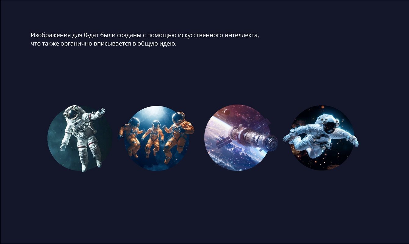 Изображения для 0-дат были созданы с помощью искусственного интеллекта, что также органично вписывается в общую идею.