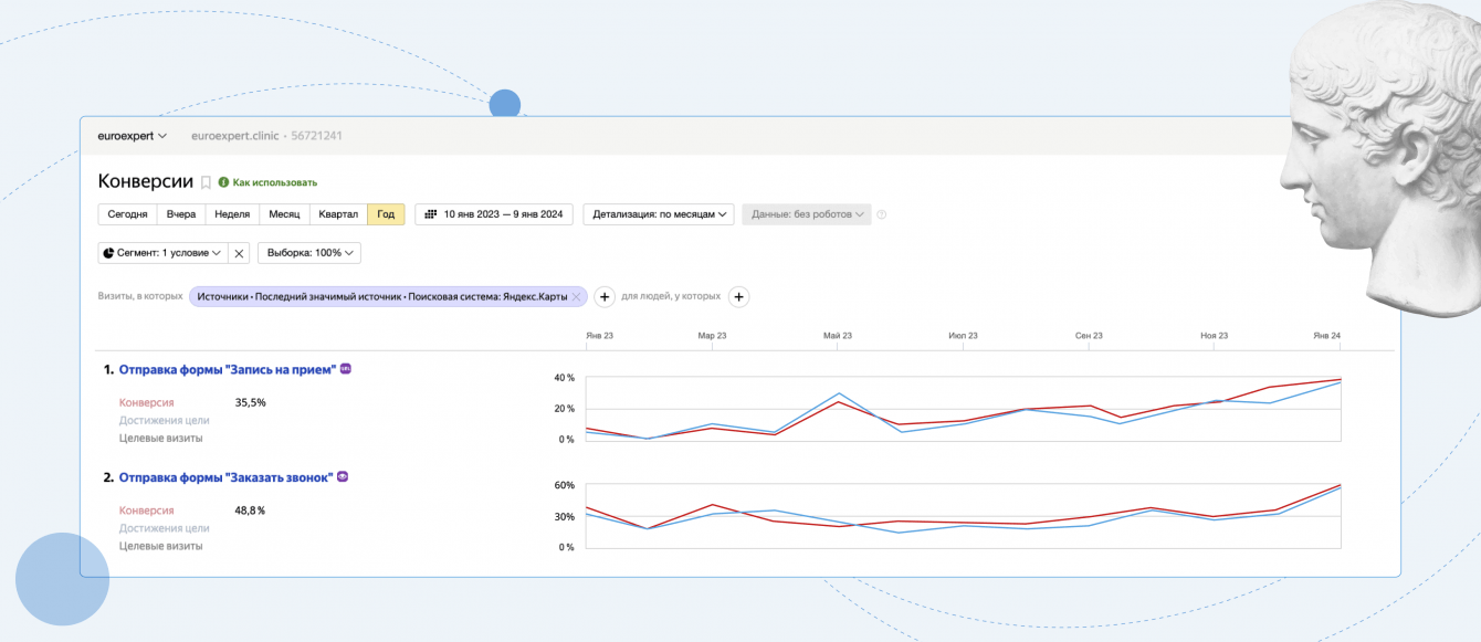 Всего через три месяца мы зафиксировали результат: +25% целевых визитов через Яндекс Карты. Выросли и конверсионные показатели.